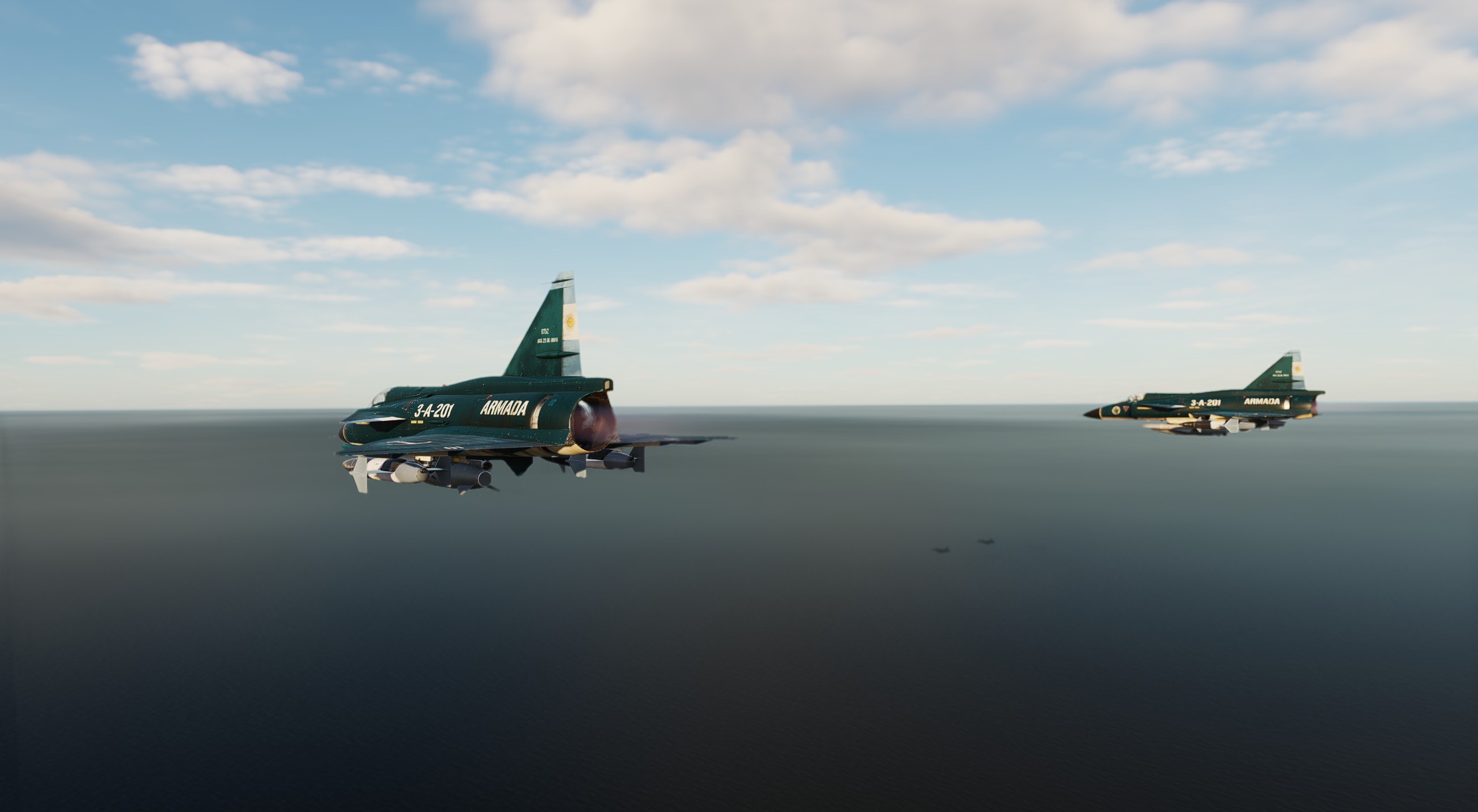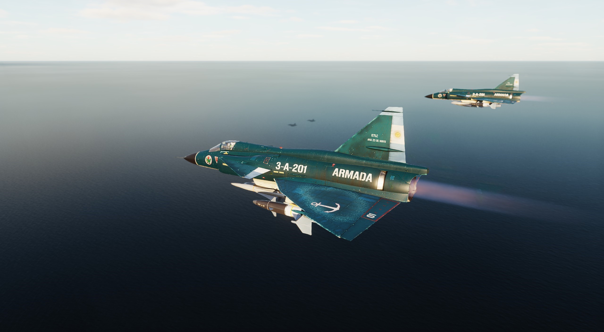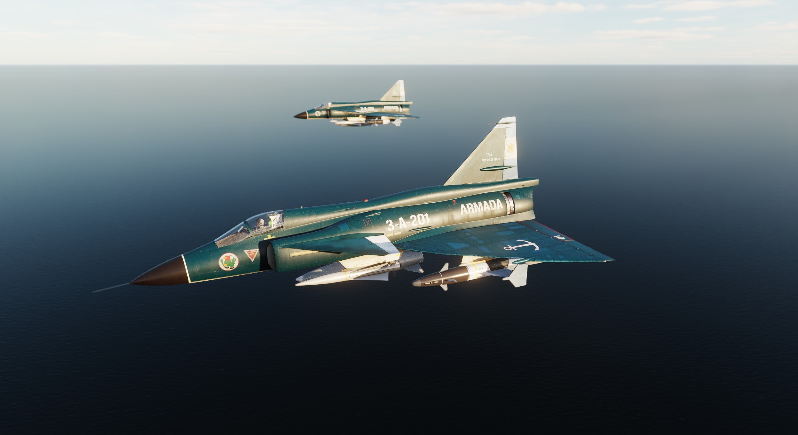 Disappointed that DCS does not have an official Super Étendard module for your Falklands Island missions on the South Atlantic map? Well, here is the next best thing. Designed after 2da Escuadrilla Aeronaval de Caza y Ataque 3-A-20 and made for the Air Goons "The Long Afternoon War" campaign.