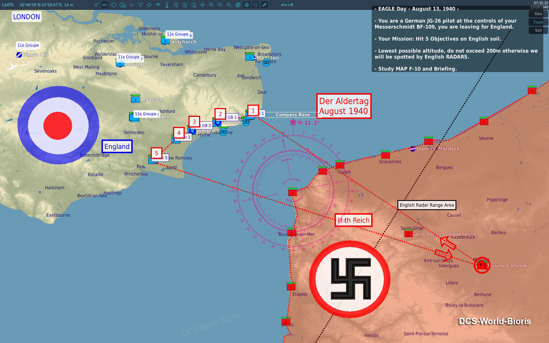 Version MULTIJOUEURS - Bataille historique - Départ de la Bataille d'Angleterre, chassez les BF-109 allemands, défendez le ciel d'Angleterre à bord de votre Spitfire.