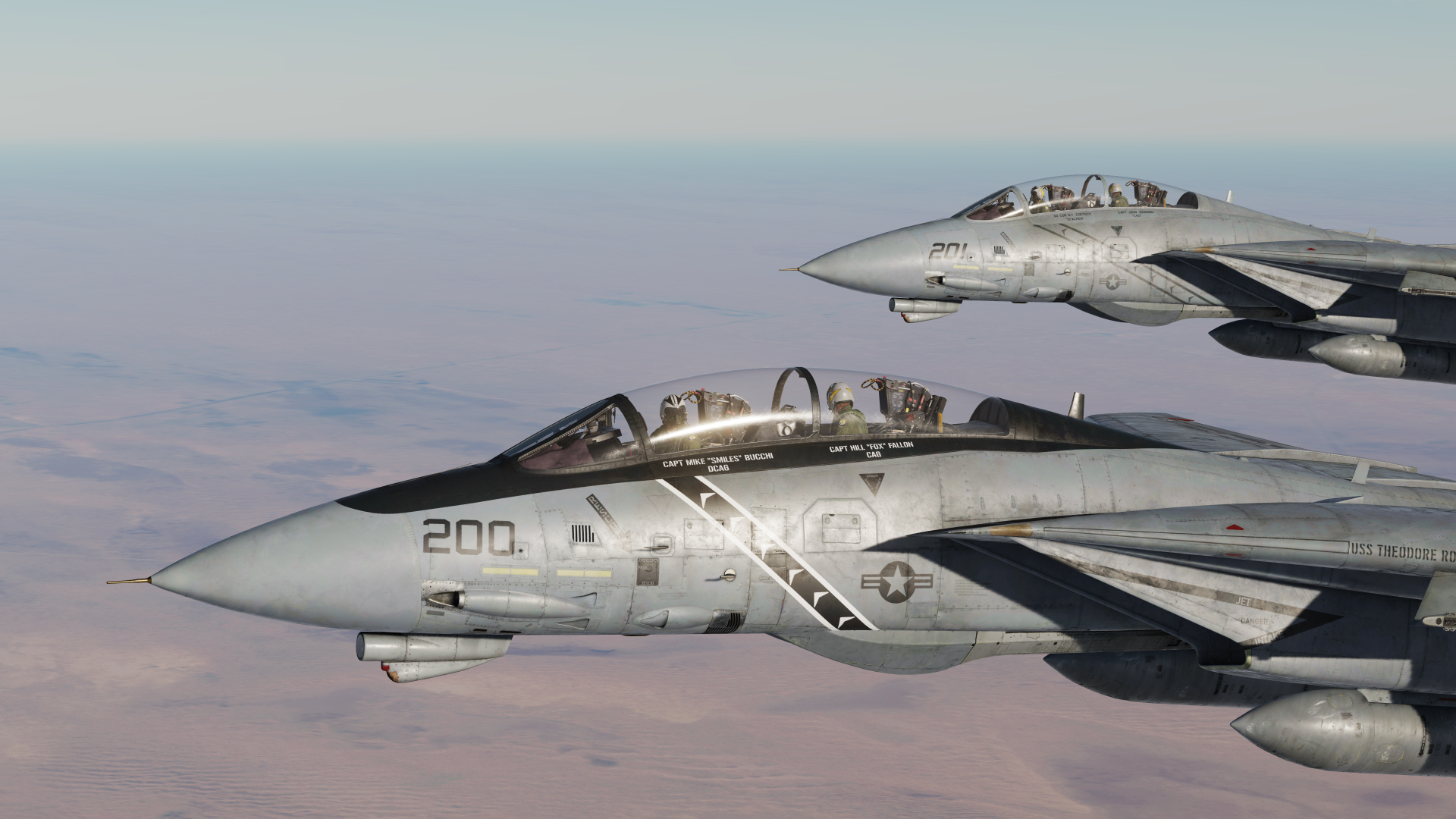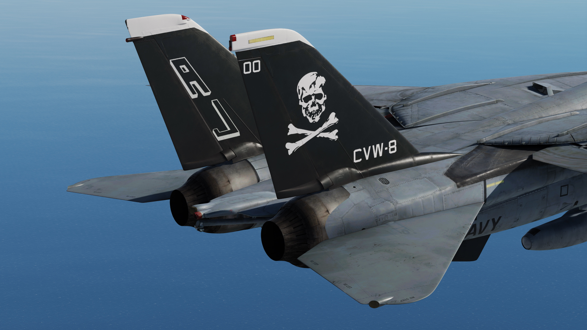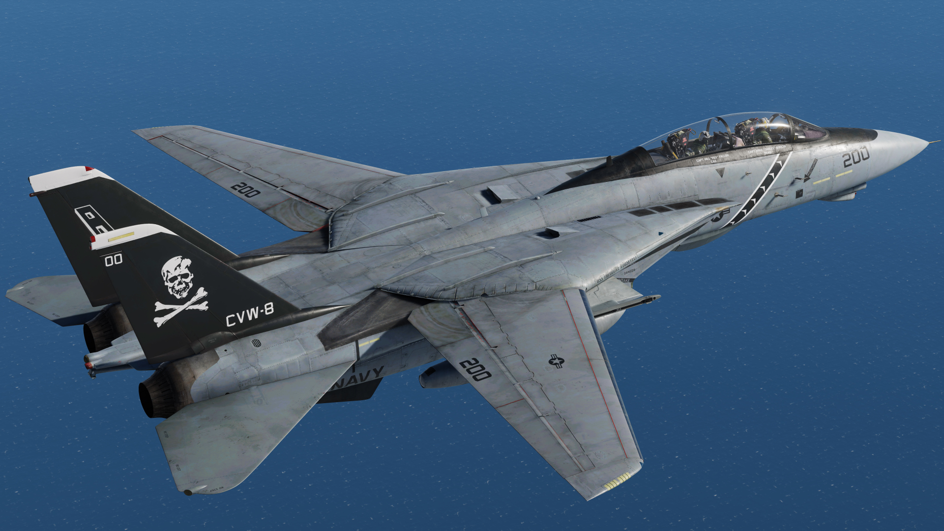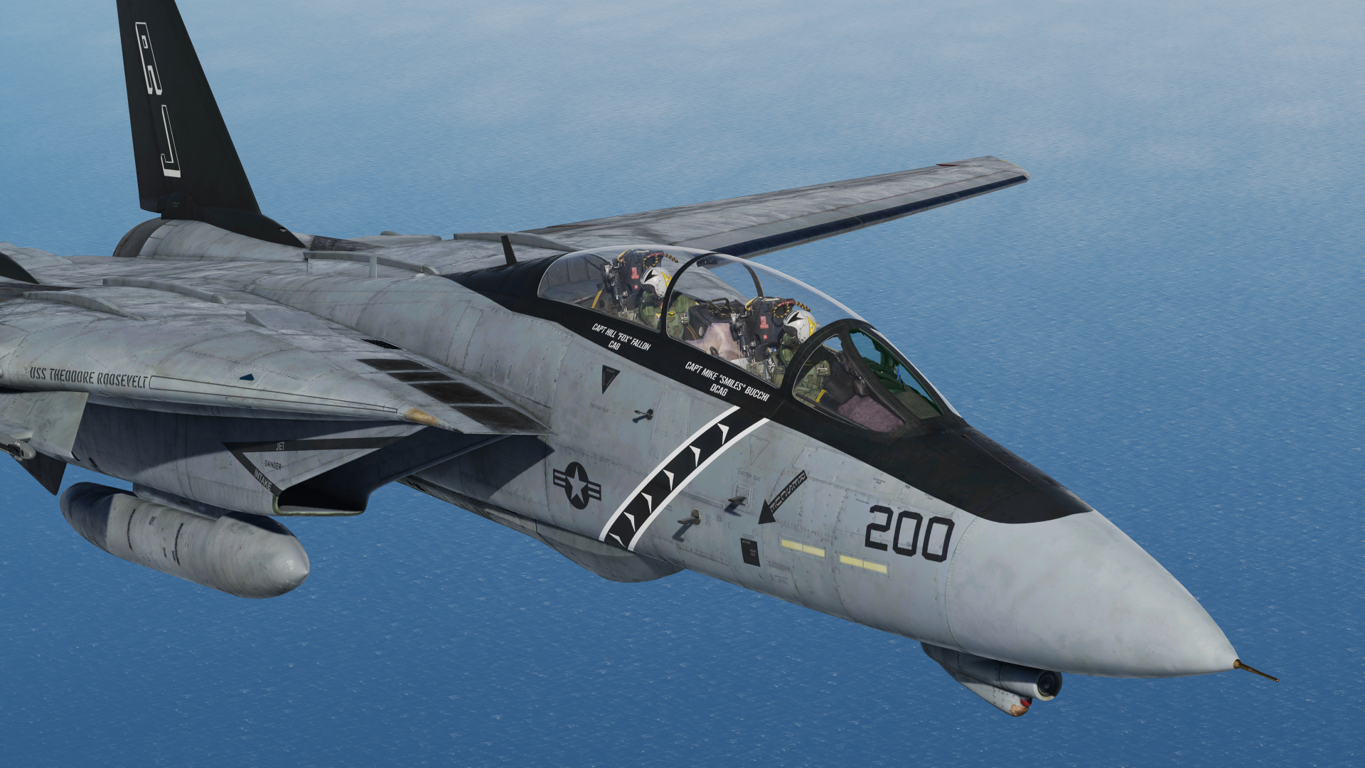 This livery for the F-14A features nose art and a low viz VF-84 skin. This aircraft took part in the Gulf War onboard USS Theodore Roosevelt in CVW-8