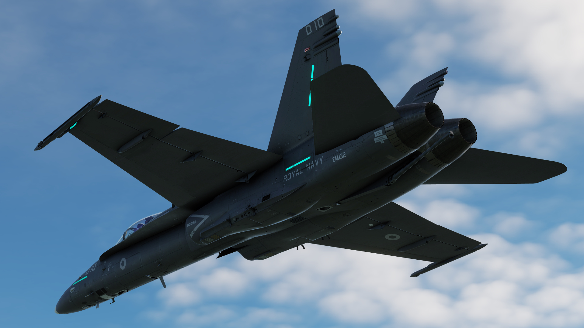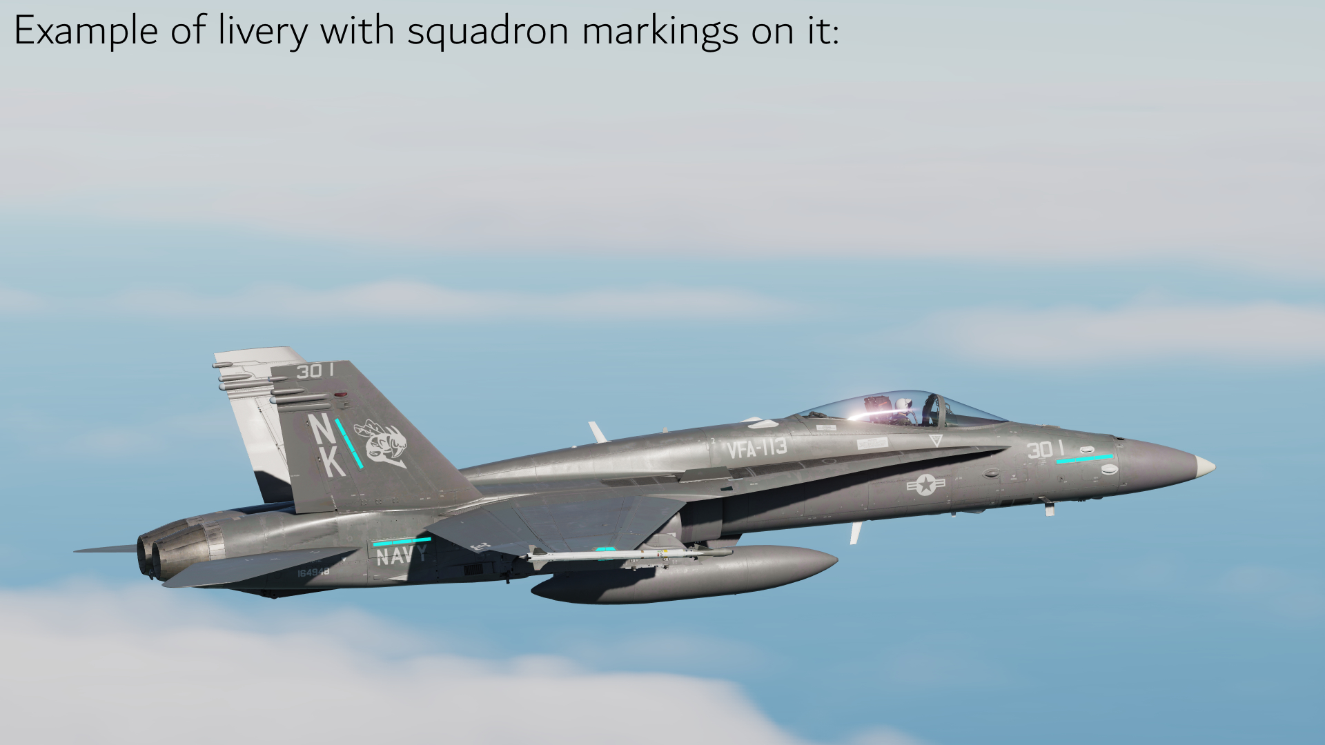 Dark Liveries for the US Navy and Fleet Air Arm for the F/A-18C. Custom Squadron markings could potentially be added to the livery.
