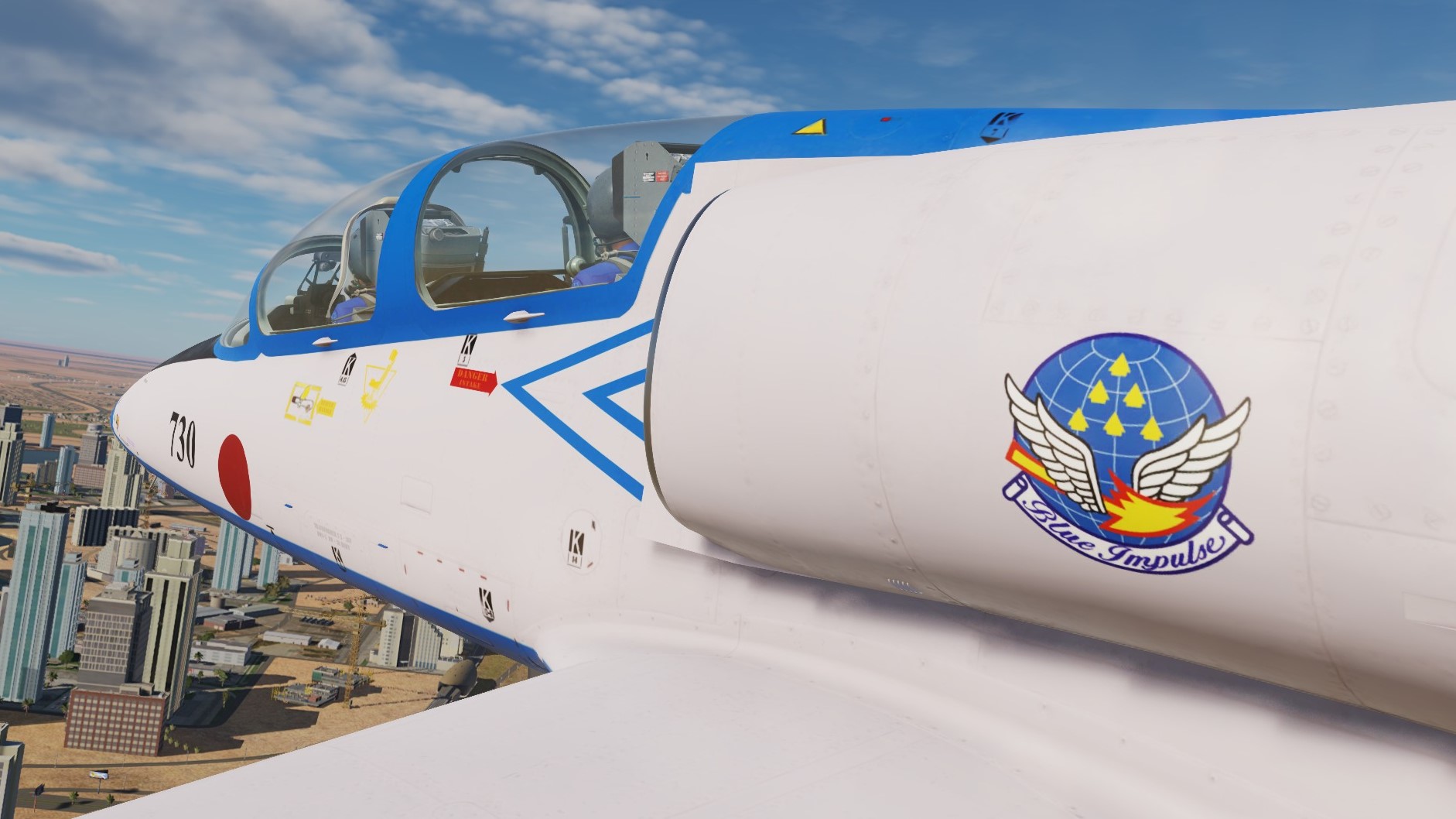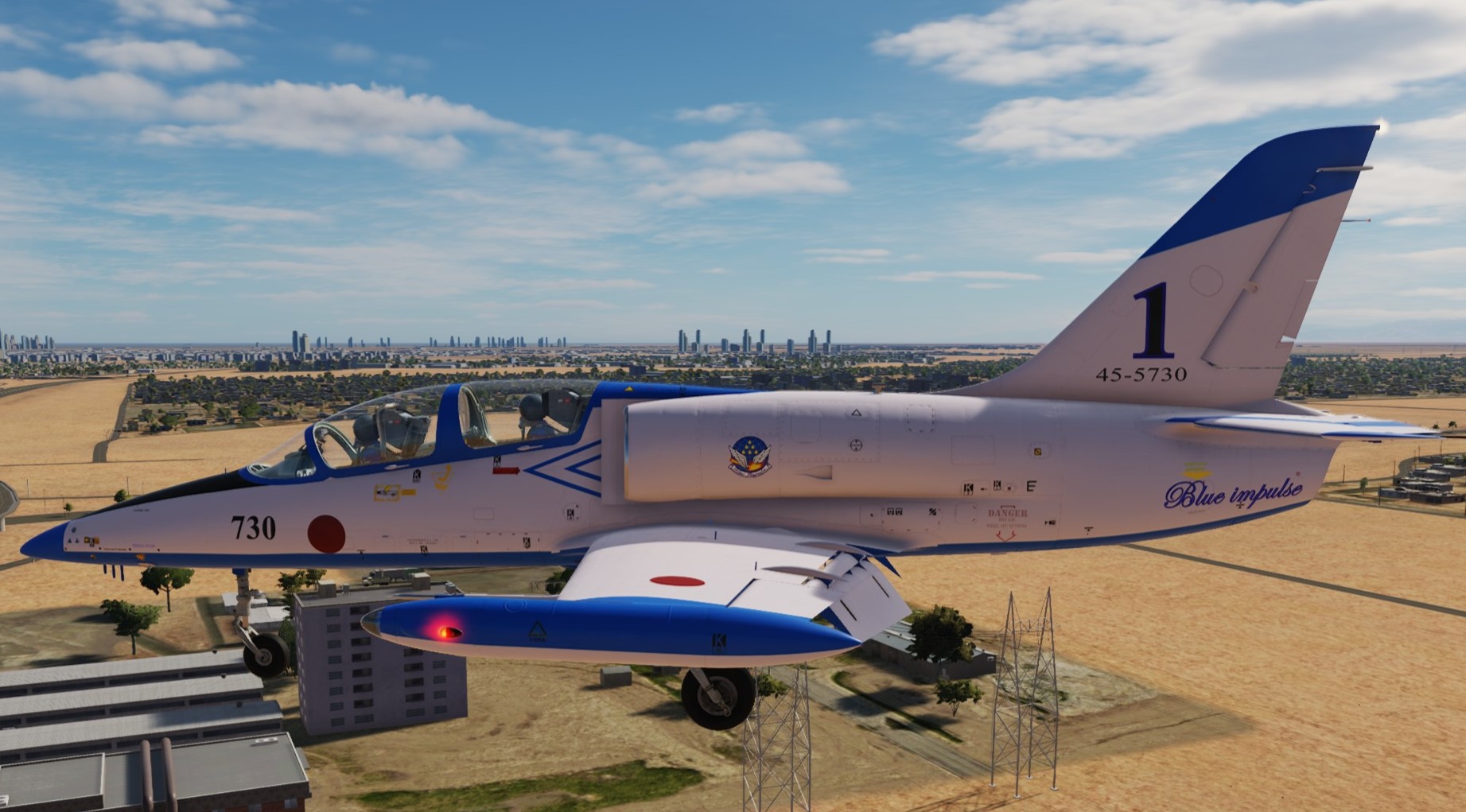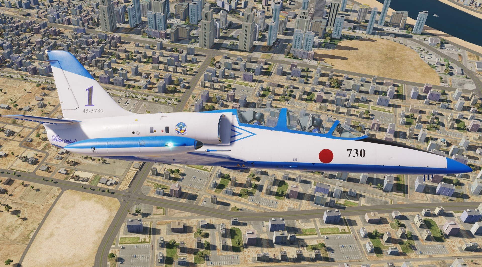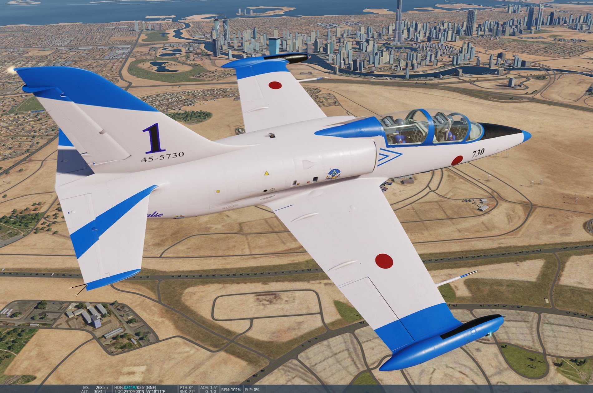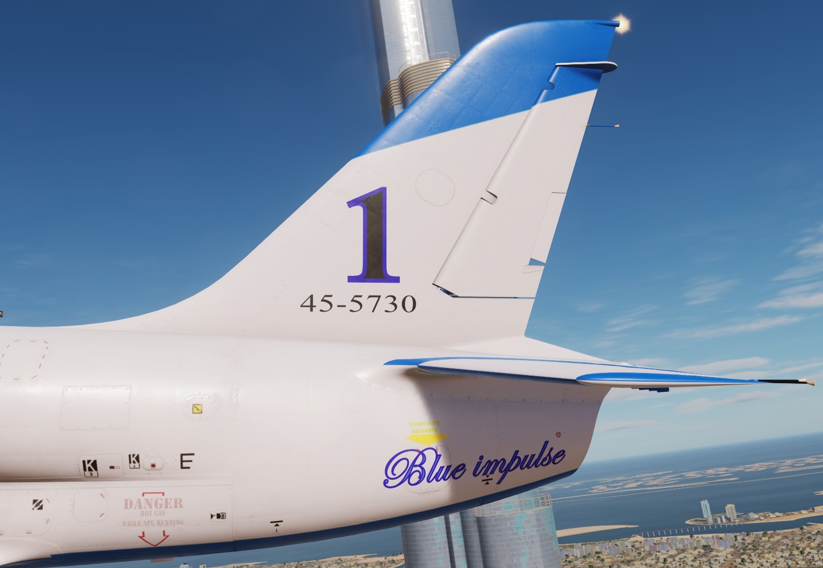 The Japanese Display team blue impulse typically use the Kawasaki T-4. However since this aircraft is not in game i have repainted the l39 with some artistic licence as the blue impulse teams number 1 aircraft