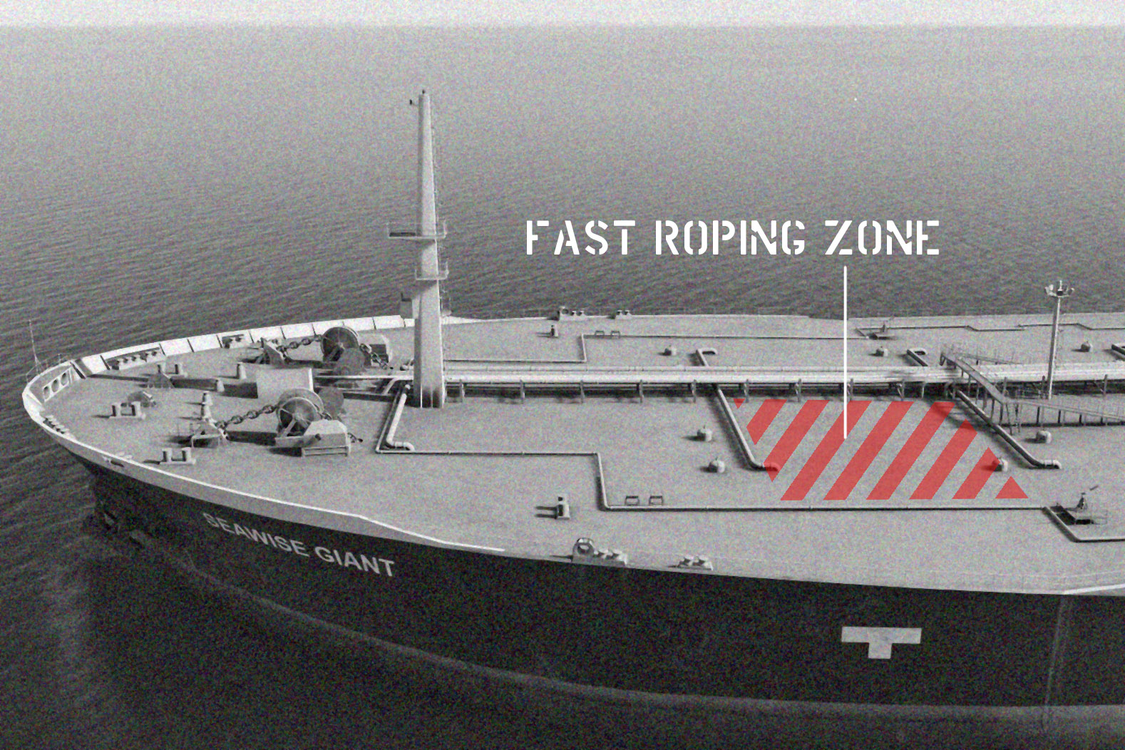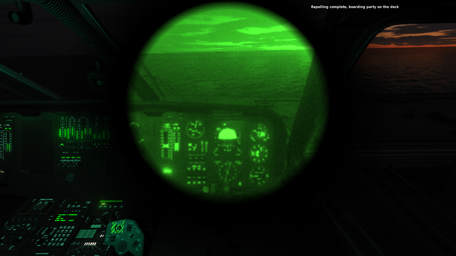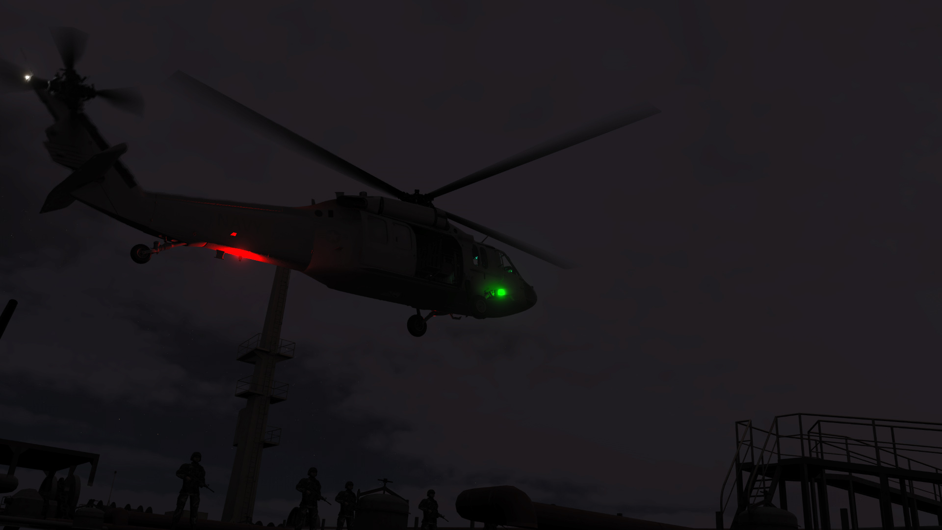 As part of the rescue operation you are tasked to fly a boarding team to the ranker and drop them off by fast roping - at night.