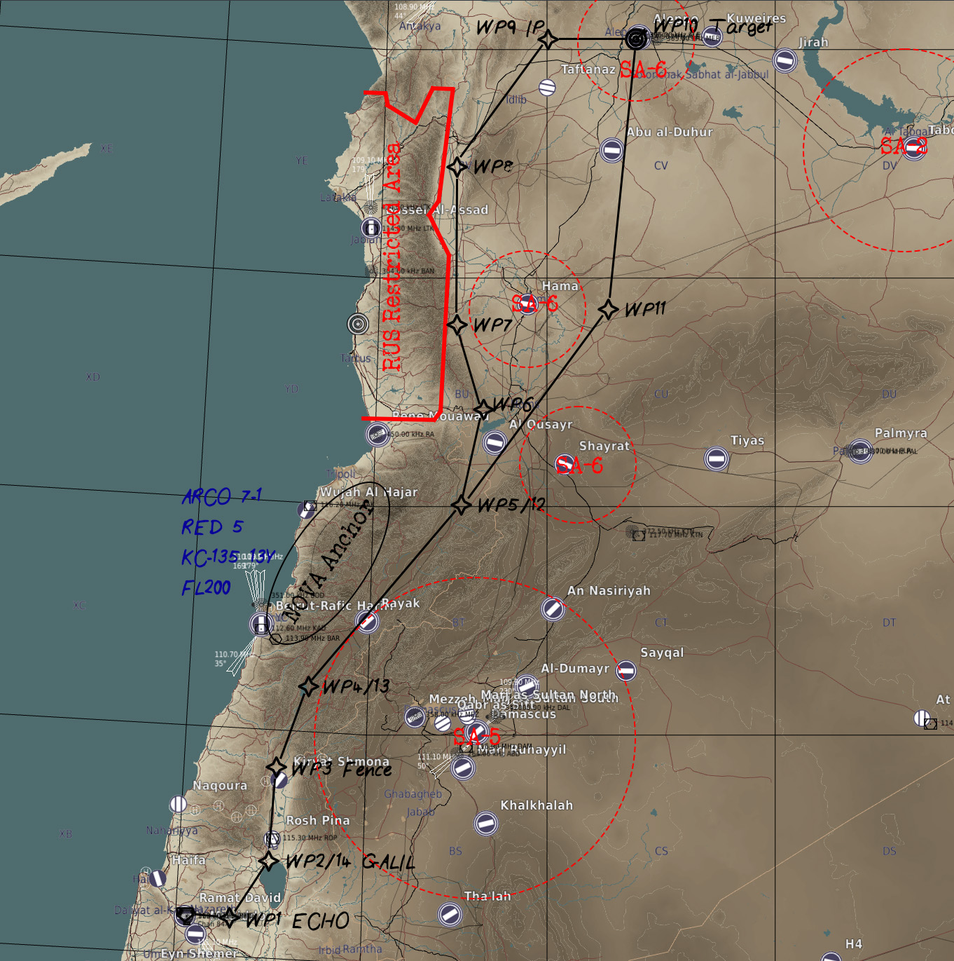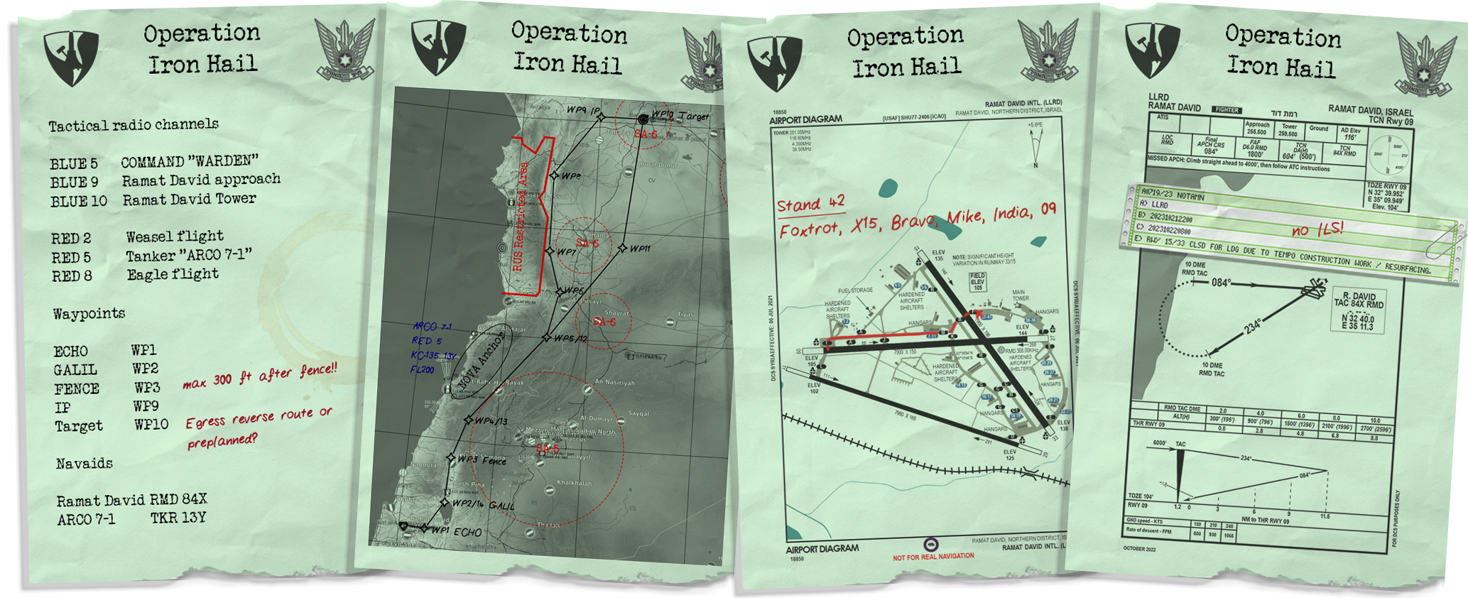The runway at Aleppo airport will be destroyed in a surprise attack before sunrise on 22 October. A single F-16C, callsign HAMMER 710, will be launched from Ramat David Air Base and conduct a night low level attack using Mk82AIR bombs.