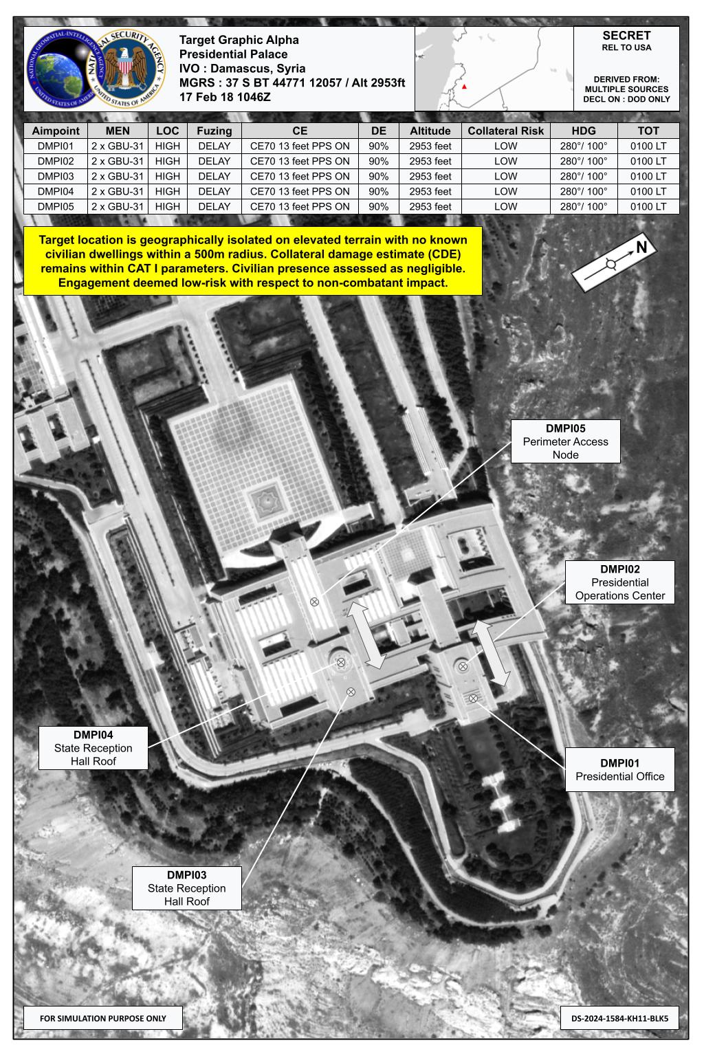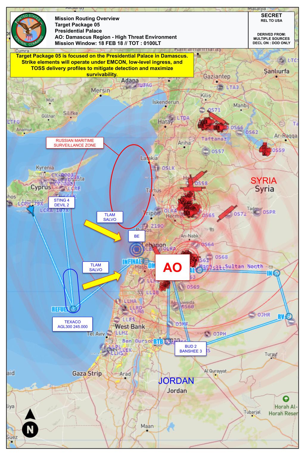 On the night of February 7–8, 2018, pro-regime Syrian forces, including Russian mercenaries, engaged in a direct assault on coalition positions near Khoucham, eastern Syria. In response to this unprovoked and coordinated aggression, POTUS has authorized precision retaliatory strikes targeting key leadership infrastructure in Damascus.