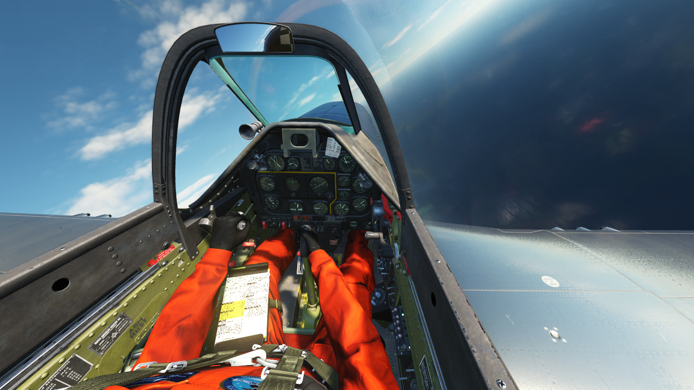A fictional, civilian airshow/racing livery for the TF-51D. Includes custom helmet, patches, cockpit photo and orange flight suit. External model textures (the aircraft livery itself) are compatible with the P-51D Mustang.