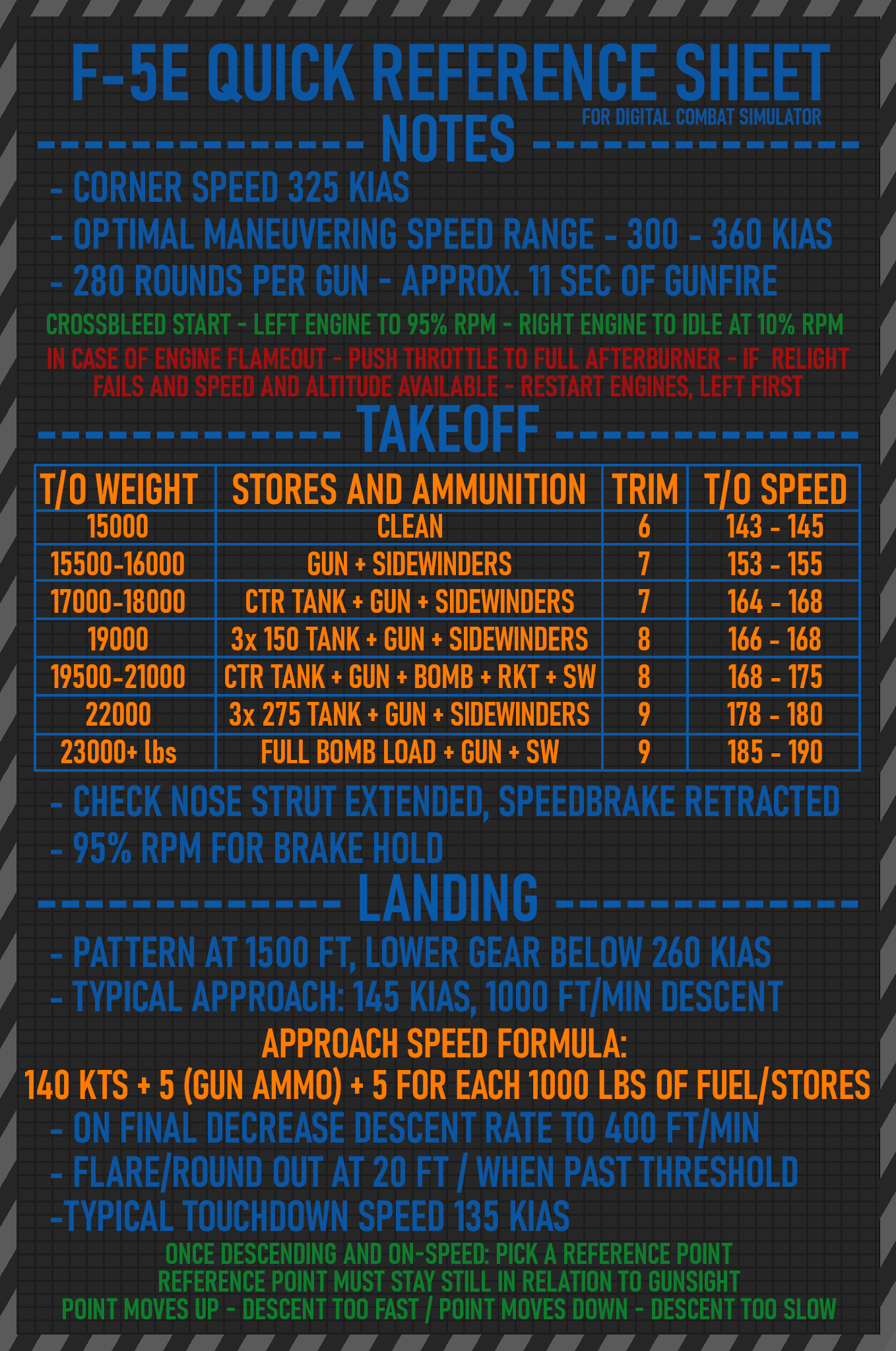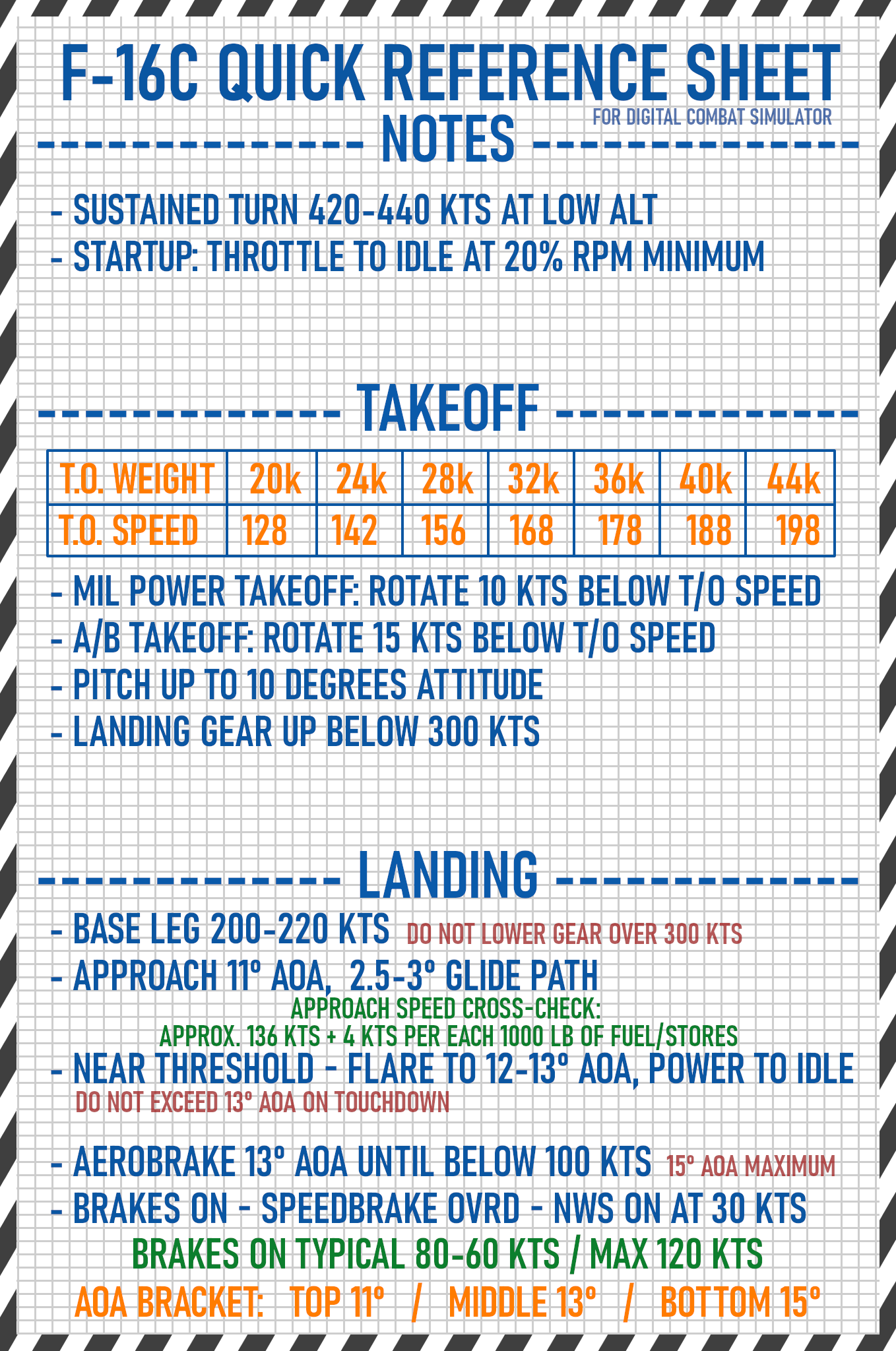 Takeoff/Landing Quick Reference Sheets For Kneeboard