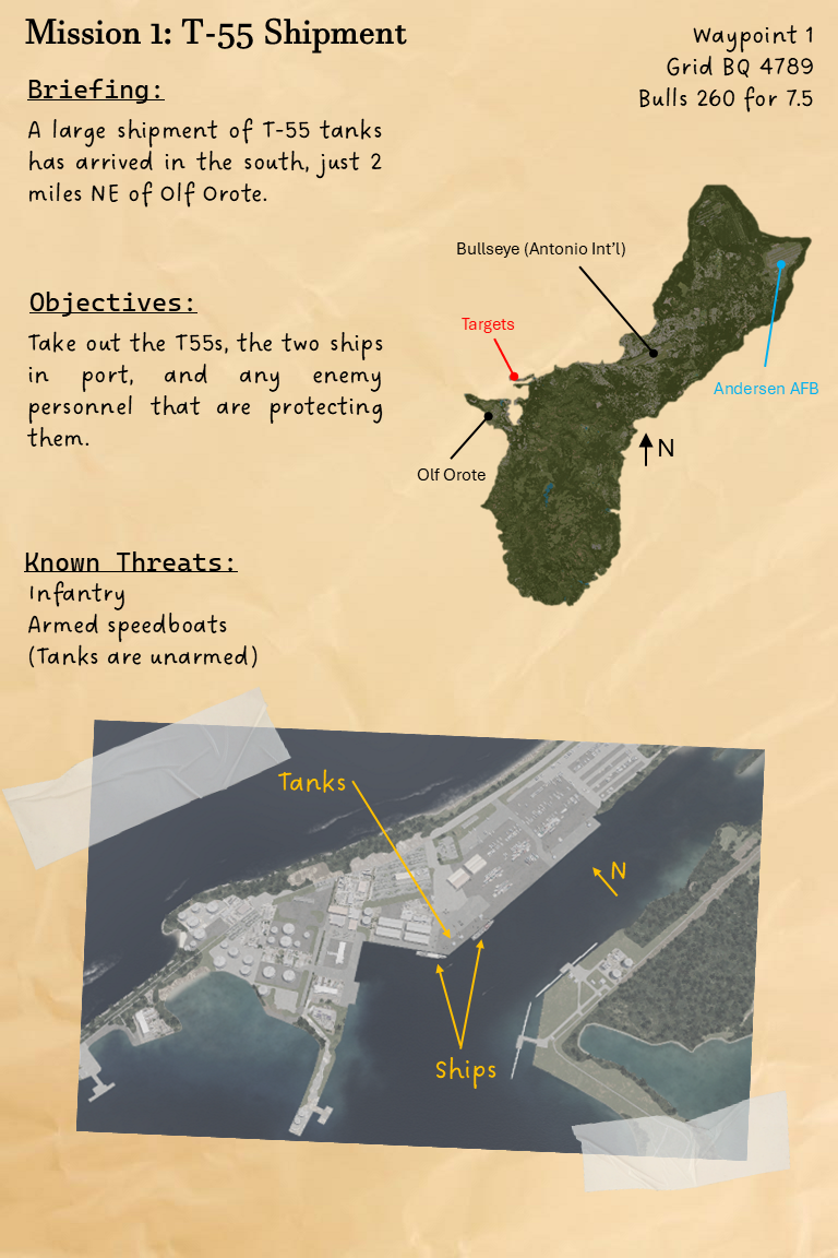 But wait, that's not all!  You can also practice strafing aircraft sitting on Sapian, AAA on Rota, or spawning in Bandits.