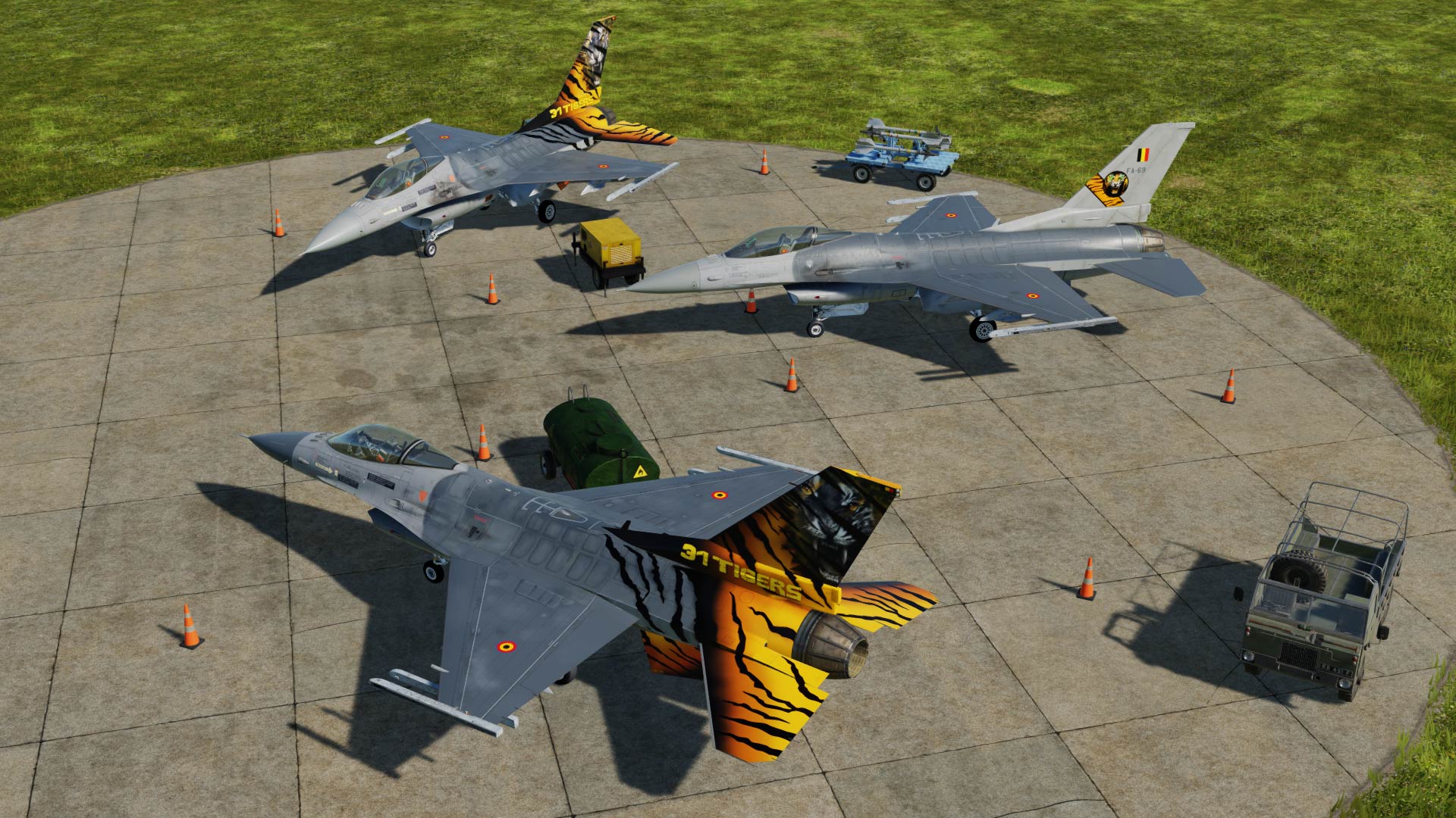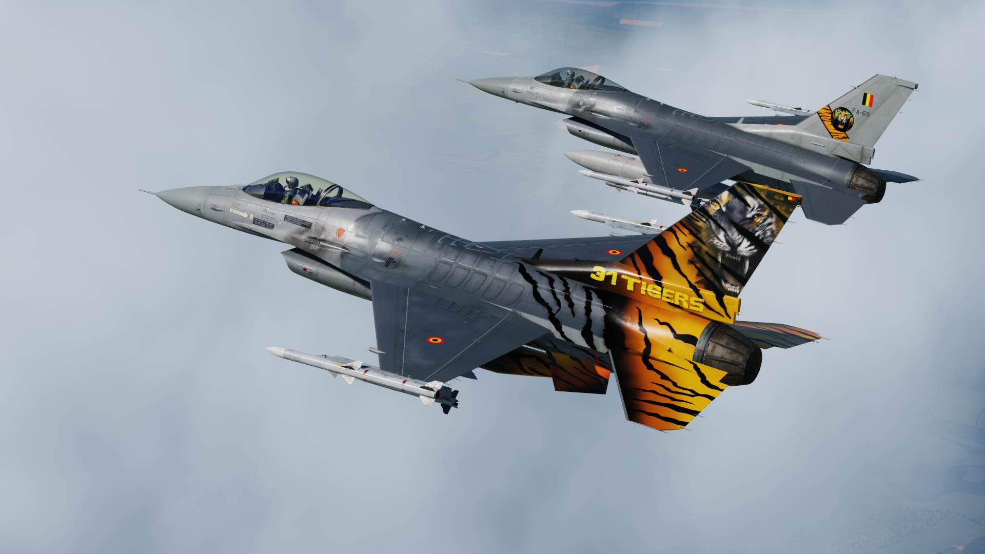 This is a photoreal recreation of 3 Polish Air Force F-16C 52+ Tigermeet Liveries with tons of little extras to make it look as much as a block52+ as possible! The skin is compatbile with Scooby's CFT mod and has very detailed and weahtered CFT's and a parachute holder texture. Panels on the jet have been added seen on real jets to accomodate CFT plumbing. Custom IFF antenna in the front, custom patches, a flag in the cockpit and custom dirty fuel tanks are just a few of the details on this skin.