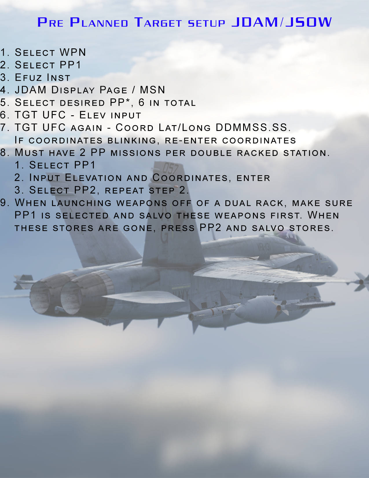 Kneeboard hints for setting up smart weapons. This is to evolve further, so if there are errors please feel free to report them.