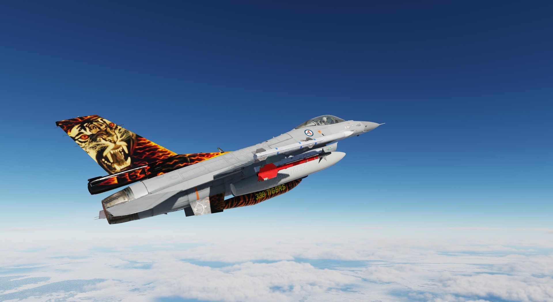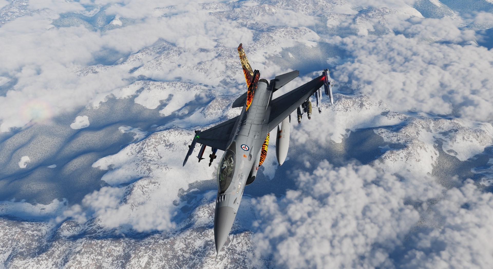 Aircraft skin for the RNoAF (Royal Norwegian Air Force) F16AM Block 20 MLU No. 664 of 338 sqn, around 2012-2016 with it’s tiger tail art.