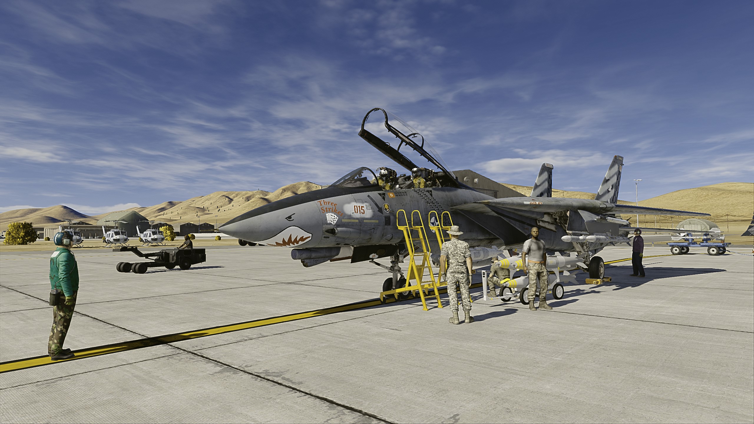 166030 was an F-14D+ Quickstrike Super Tomcat built in 1993, first being assigned to VF-67 and later VF-20. After the latter squadron transitioned to the Advanced Super Tomcat in 2012 166030, like all other F-14D+s not destined for museums or aggressor use, was sent to one of the Osean military's multiple boneyards, specifically the 444th AMARG situated in a large desert on the Usean continent. After the start of the Lighthouse War and establishment of the 5th Special Composite Squadron under Col. McKinsey 166030 was one of the aircraft handed over to the "Scrap Queen," who managed to undo seven years of atrophy in just over three weeks. After a few days the squadron received a new member, the infamous disgraced Super Hornet pilot John Faulkner and his weapons systems officer Bill Denholm, falsely accused of assassinating the former president.