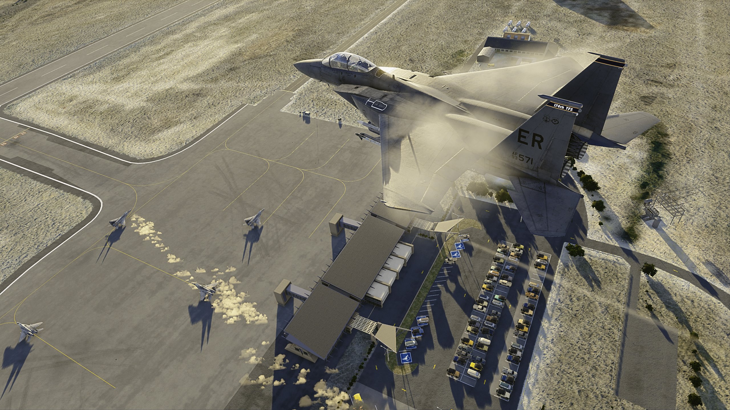The 174th Tactical Fighter Squadron "Flamin' Sabers" is a component of the 185th Fighter Wing alongside the 170th FS, 175th FS, and the 177th TFS. They have deployed in the Strike Eagle in nearly every conflict since the Belkan Civil War and has performed admirably in all combat since. During the Lighthouse War one of the squadron's Mudhens (specifically SerNo. 92-074) became the first individual Strike Eagle to drop over 1,000,000 pounds of ordnance in total when its crew used twelve 500 lb JDAMs on an Erusean air base, destroying fifteen or more aircraft on the ground.