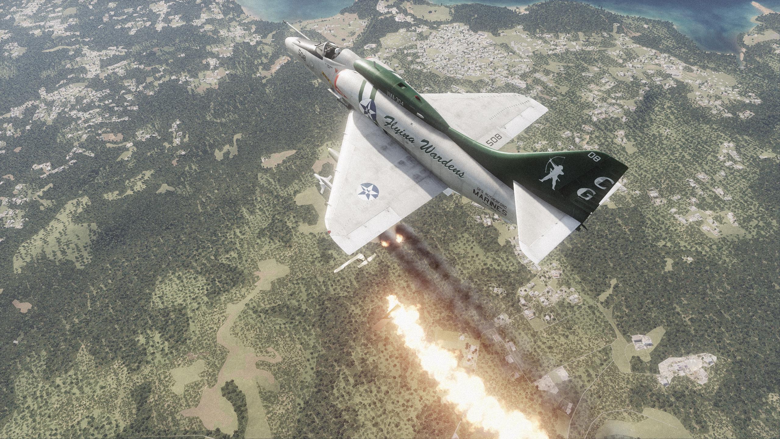 The Flying Wardens of VMFA-304 have had an exceptionally colorful history, flying everything from the F4F Hellcat and AD Skyraider to the RA-5C Vigilante and the F-35D Lightning II. Between their stints with the Skyraider and Vigilante they operated the A-4 Skyhawk, providing close air support to Osean and Aurelian forces against communist insurgents in the latter country's northern jungles. VMA-304 notably was the squadron with the only Marine Corps ace of the war not to fly the F-4 Phantom or F-8 Crusader, with Capt. Luis Avery shooting down two enemy aircraft with an A-1 and four with his Skyhawk. After three tours in the Aurelian Sea the squadron would be redesignated to RVMAH-304, becoming the sole Marine Corps squadron to operate the RA-5C and one of three equipped with any form of the Vigilante (along with VMAH-63 and VMAH-174 flying the A-5B non-nuclear variant) and would later operate the A-6E Intruder as VMA(AW)-304 and the F/A-18D Night Attack and F-35D as VMFA-304
