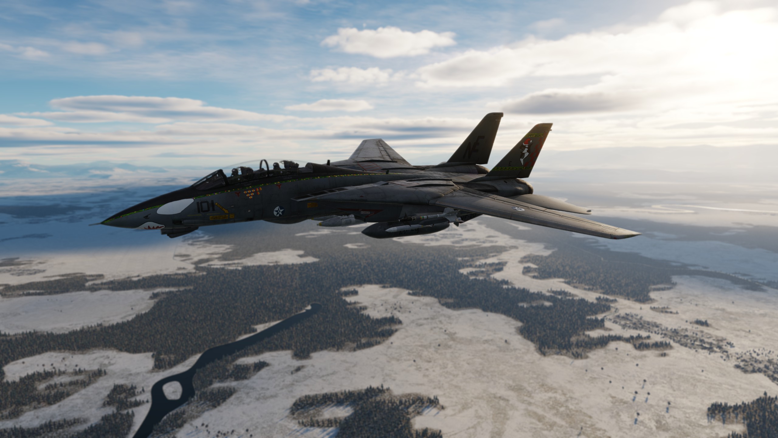 VF-55 "Silver Bullets," originally established as the "Double Nickels" as an F4U Corsair squadron in 1940, changing from them directly to the F-8 Crusader, then from the Crusader to the Tomcat in 1973. In 1977 the F-14A+ upgrade was rolled out, and 10 years later the F-14B Upgrade program began. This Tomcat, BuNo. 164999, is an F-14B Upgrade that was stripped of its tactical paint scheme in 1990 for a bare-metal scheme reminiscent of the squadron's original Corsairs in honor of their 50th anniversary
