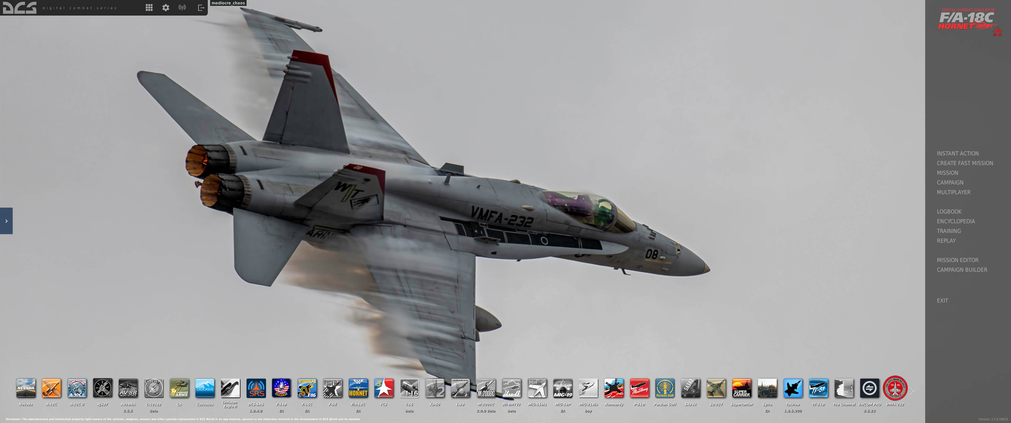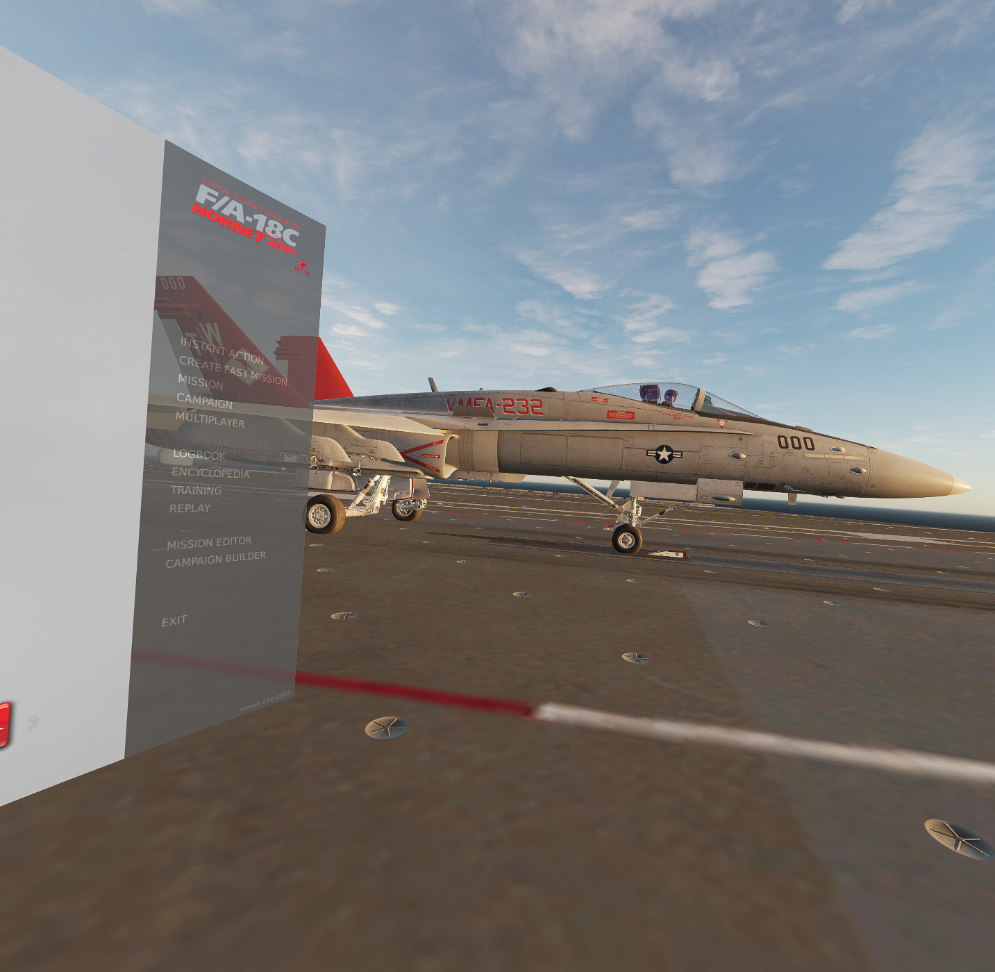 Updated with a themed VR menu scene with a VMFA-232 Hornet on the flight deck of either the Supercarrier or Stennis.