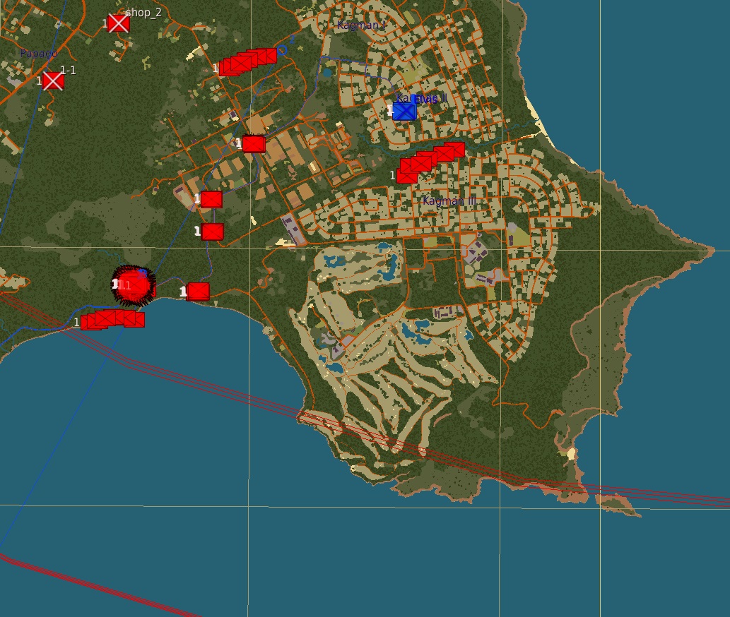 A terrorist convoy is moving from the outskirts of the city of Gernagra to the city of Lysi, containing two yellow buses that are the primary targets, and with large war apparatus as support.