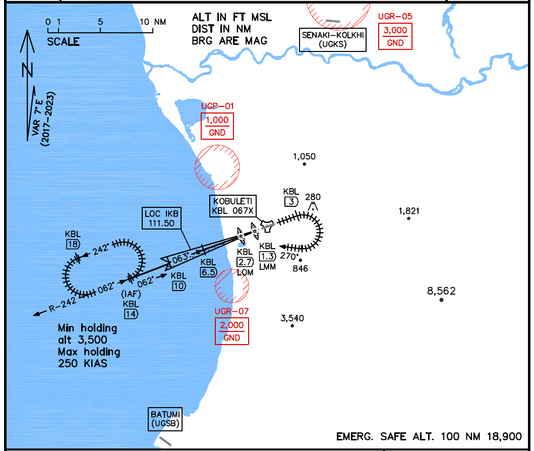 ILS approach chart for Kobuleti airport in Caucasus region.