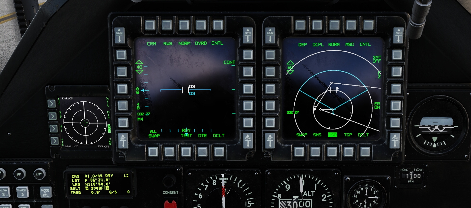 Improved F-16C displays and fonts for VR and high resolution. Reduced fuzziness and thickness of the fonts.  Slightly changed the color of the HUD and HMD to a lighter green and changed the MFD menu and displays to green from white.