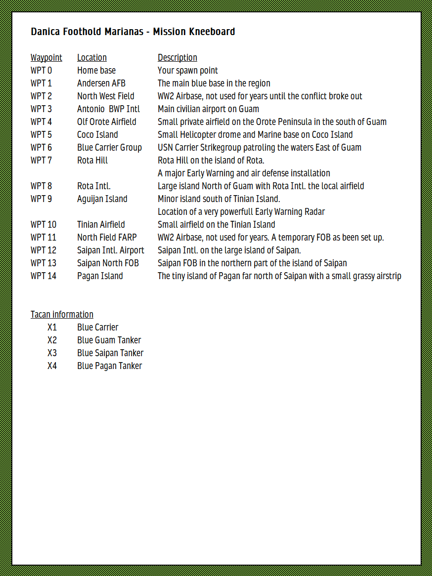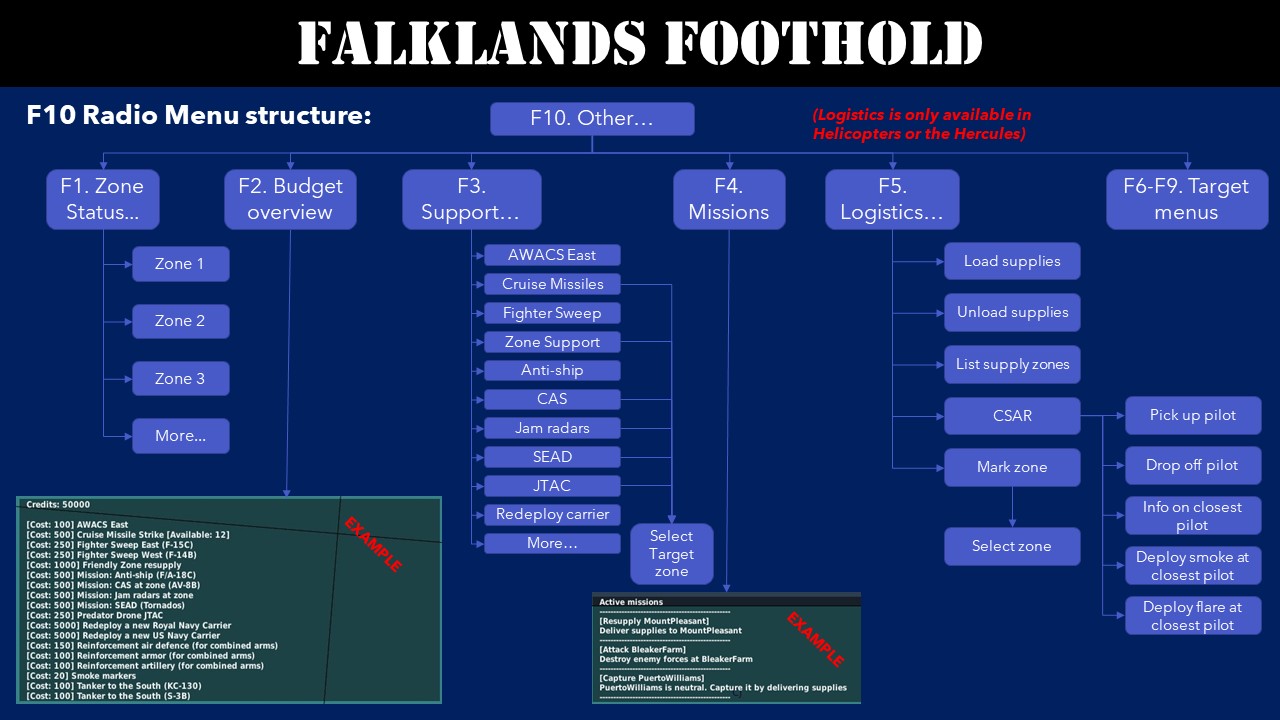 “Marianas Foothold” is a dynamic war of conquest, inspired by the ‘Foothold’ missions and based on the same scripting framework. The zoneCommander framework is made by the very talented ‘Dzsekeb’. Please support his work if you’re able to. :-)