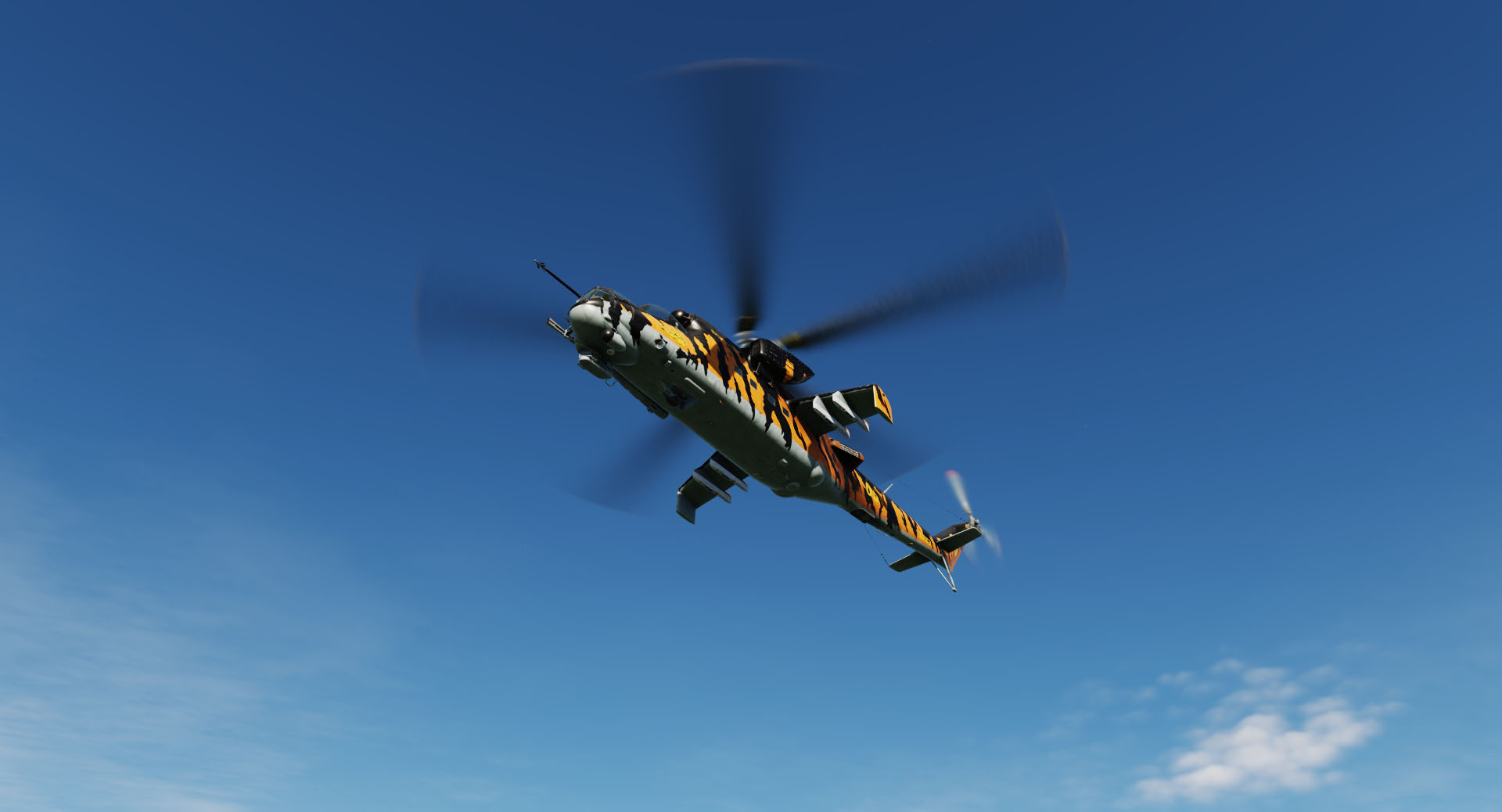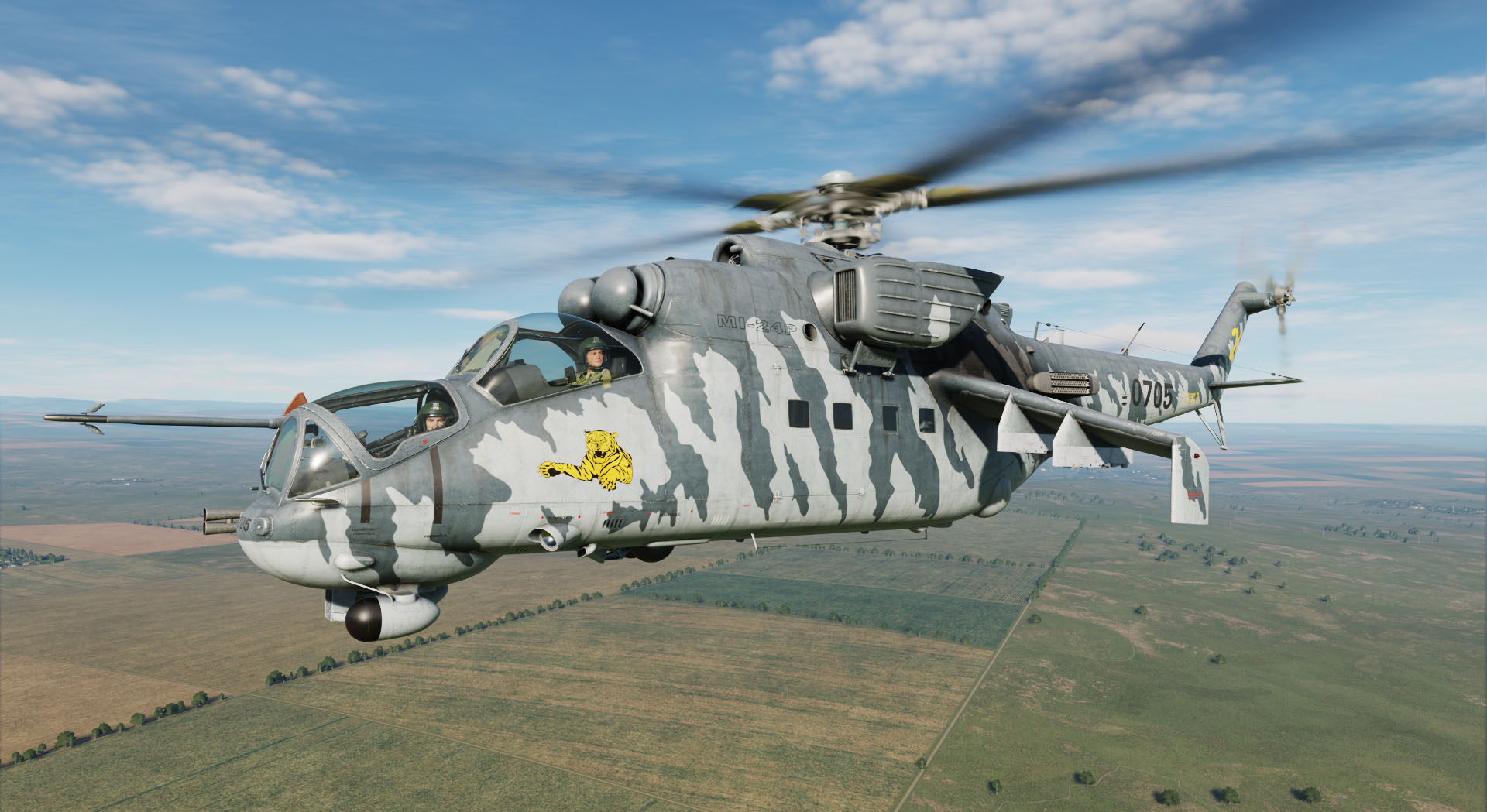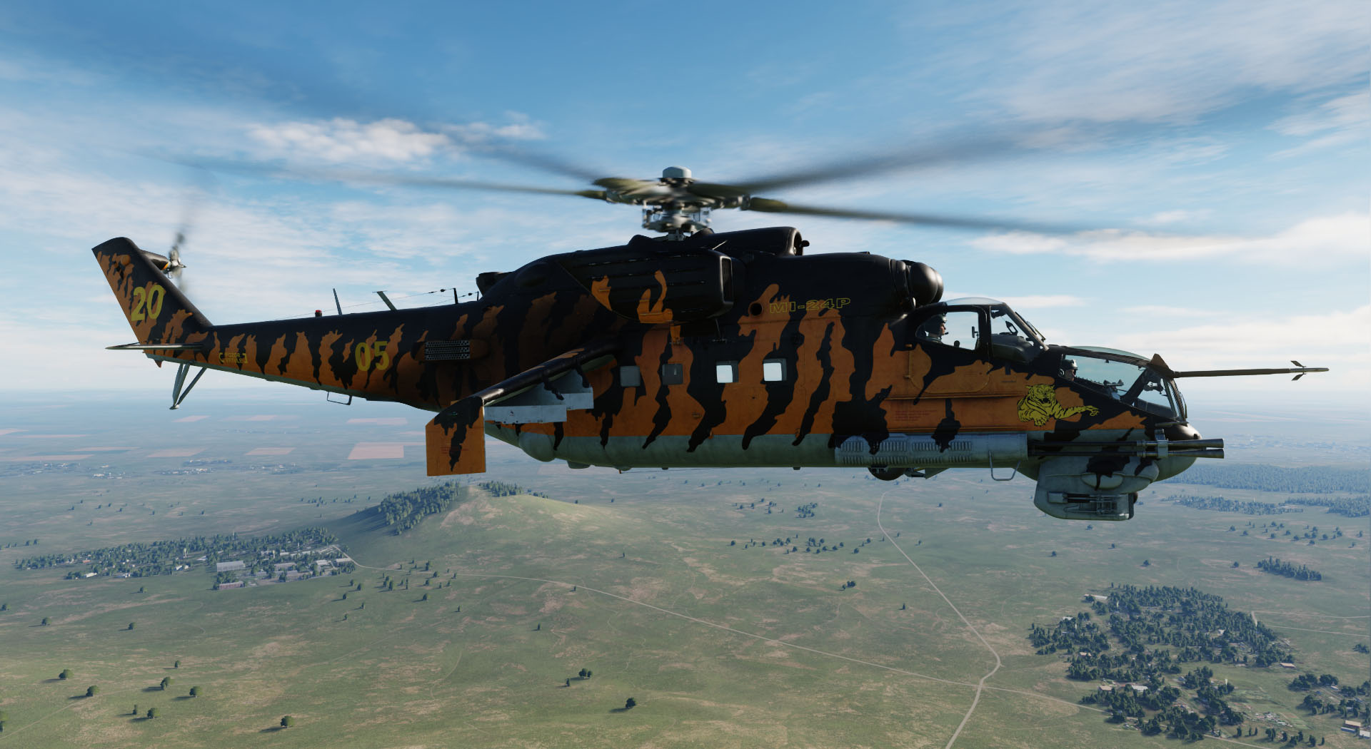 This is a fictional livery based on the tiger camo from Mi-24V no. 0705.
