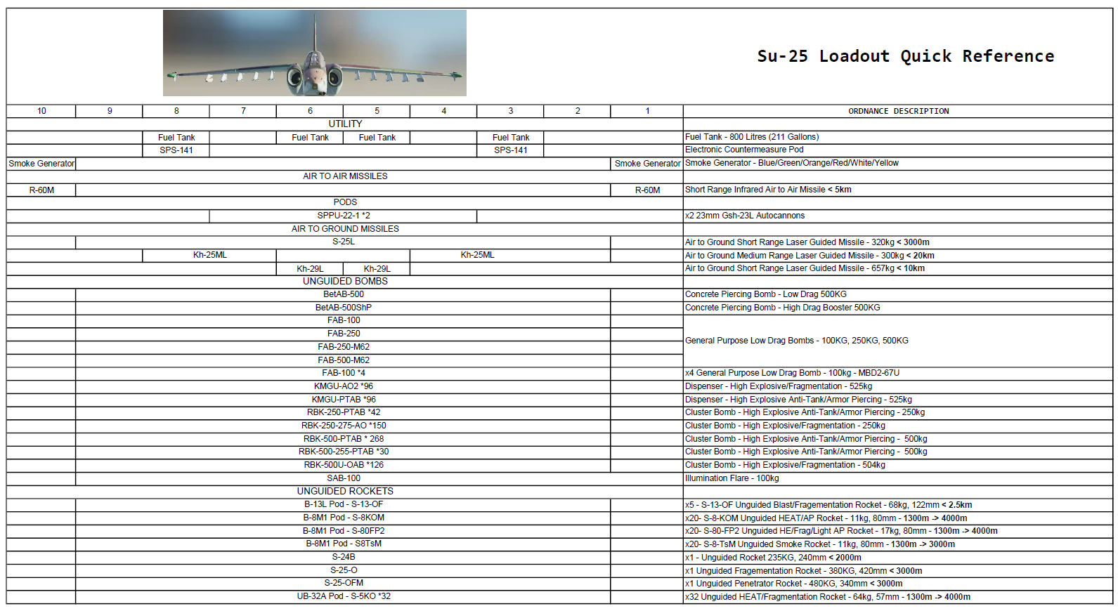 Su-25 Loadout Quick Reference PDF