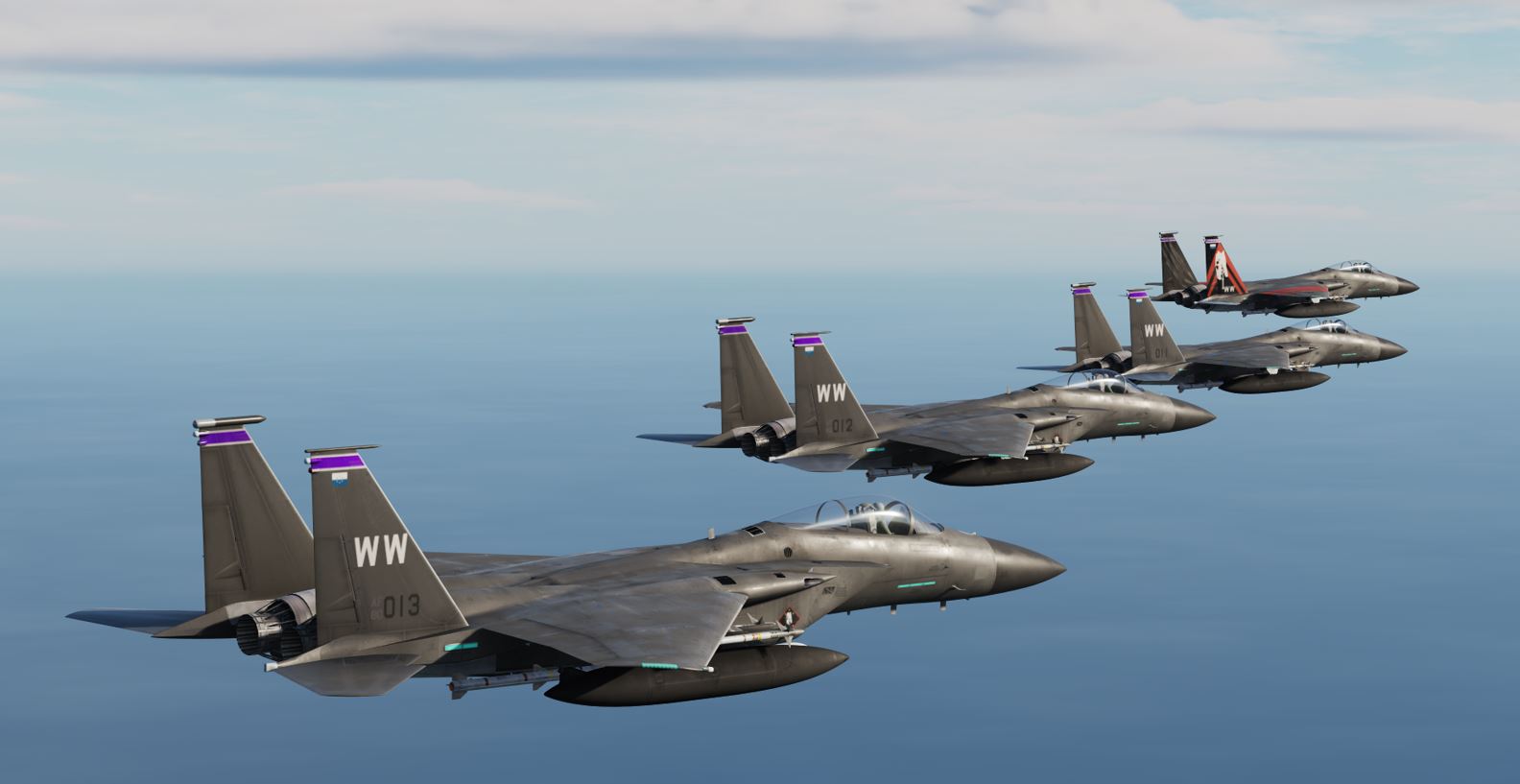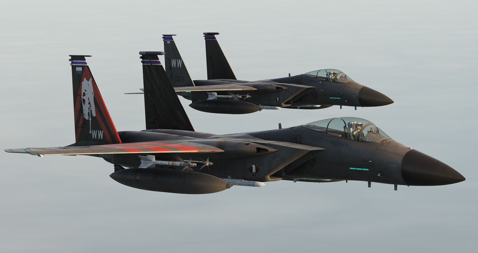 a black-white-gray version of the splinter eagle from the 65th Aggressor Squadron for the F-15E Strike Eagle.