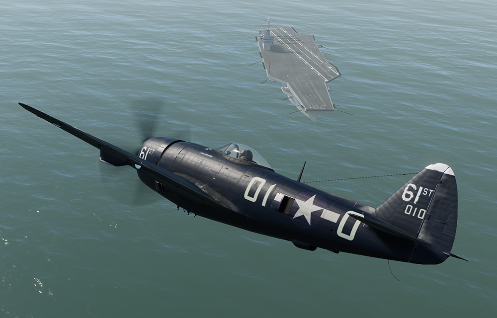 Corsair livery for the P-47D, flown by the 61st Sqdn, affectionately called the 'Corsaint'