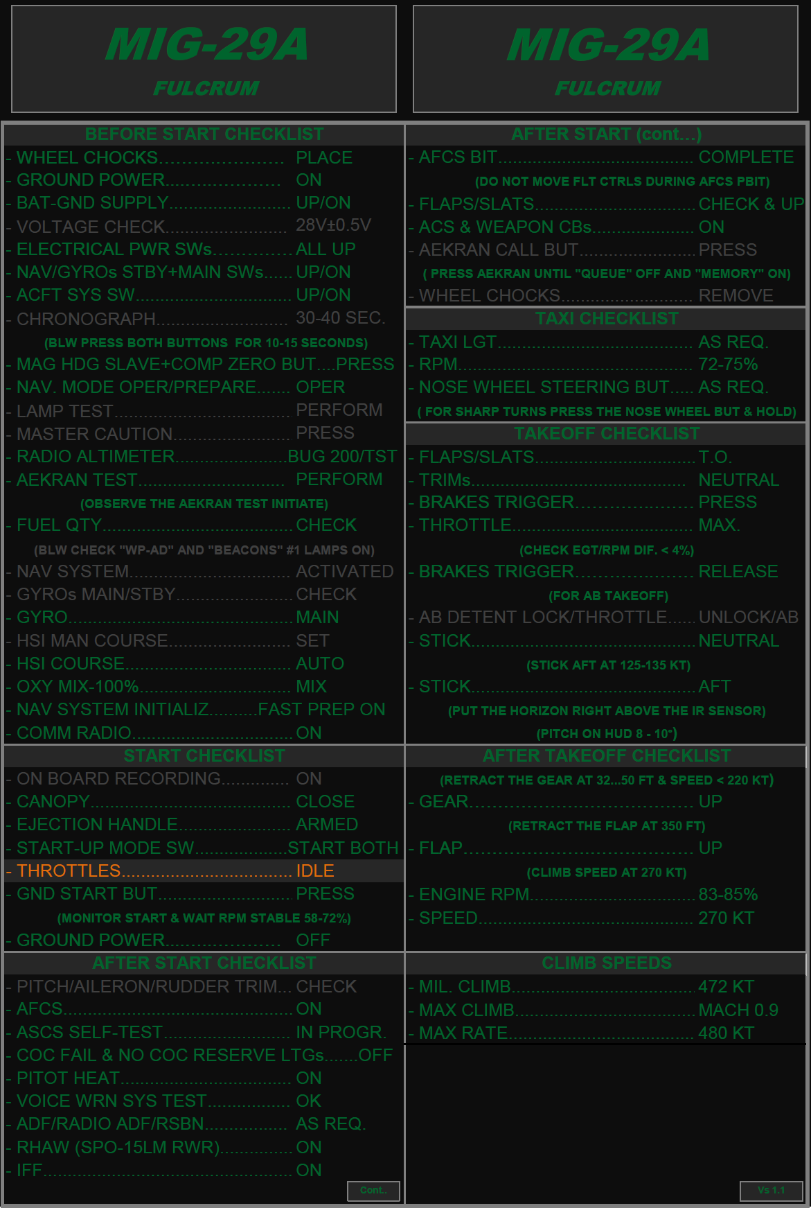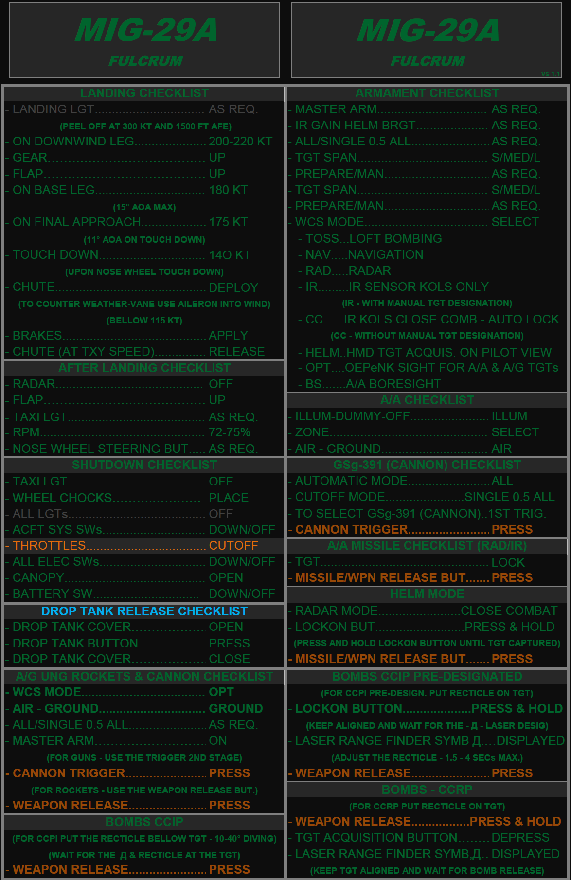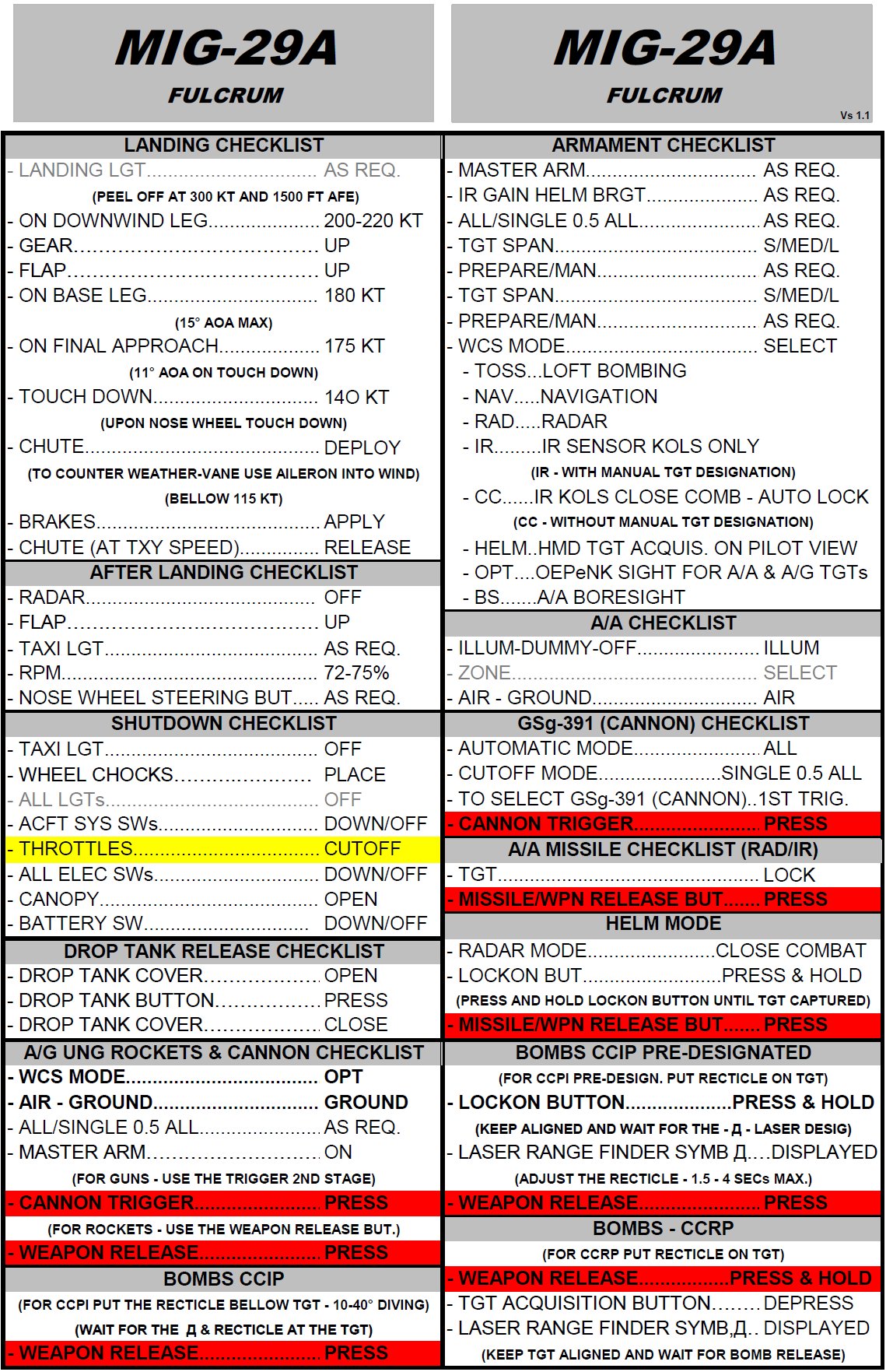 DCS MiG-29A Fulcrum Quick Checklist (vs 1.1)