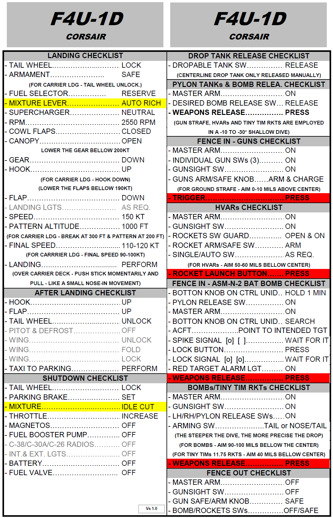 DCS F4U-1D Quick Checklist (vs 1.0)
