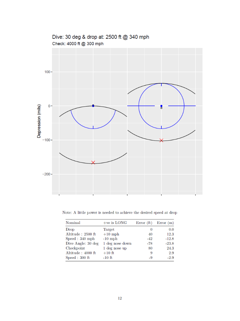 Draft Mosquito bombing tables, including updated sight pictures for suggested attack profiles and associated kneeboard pages.