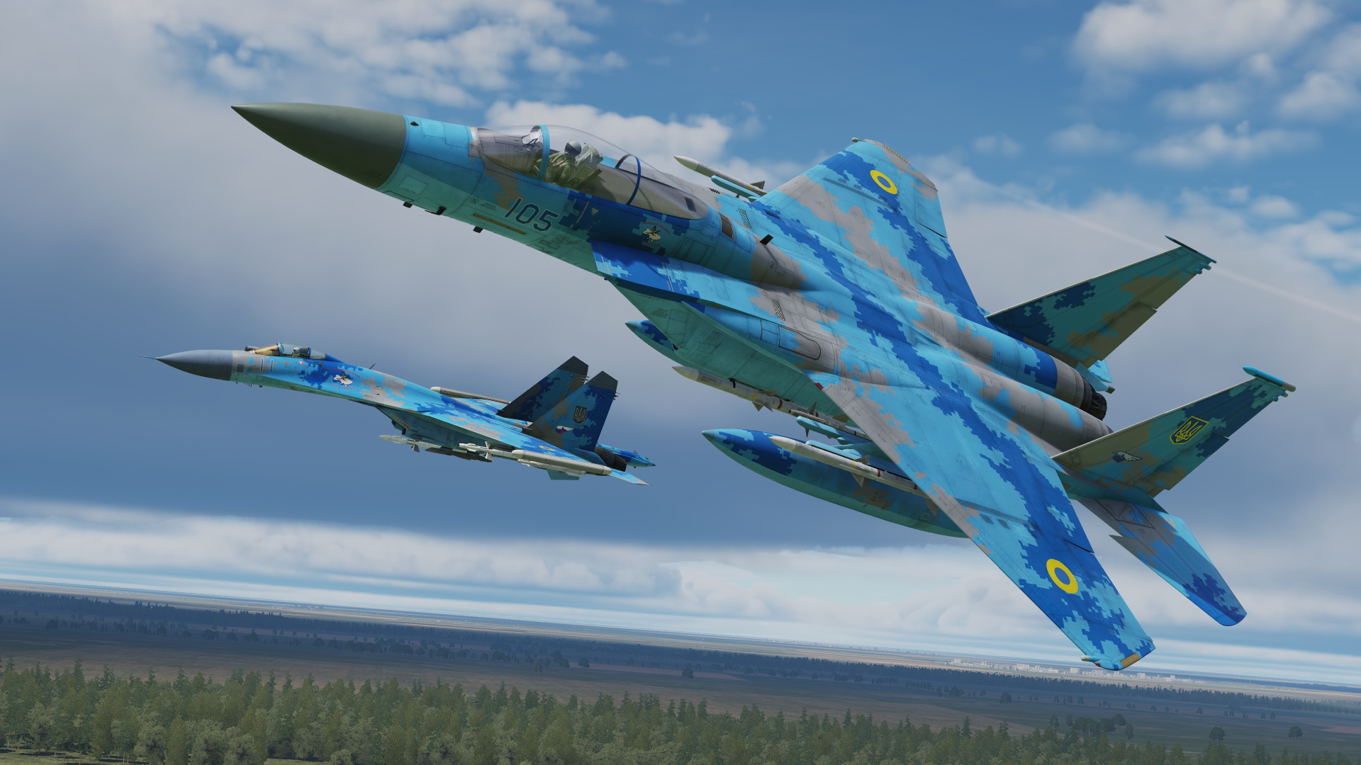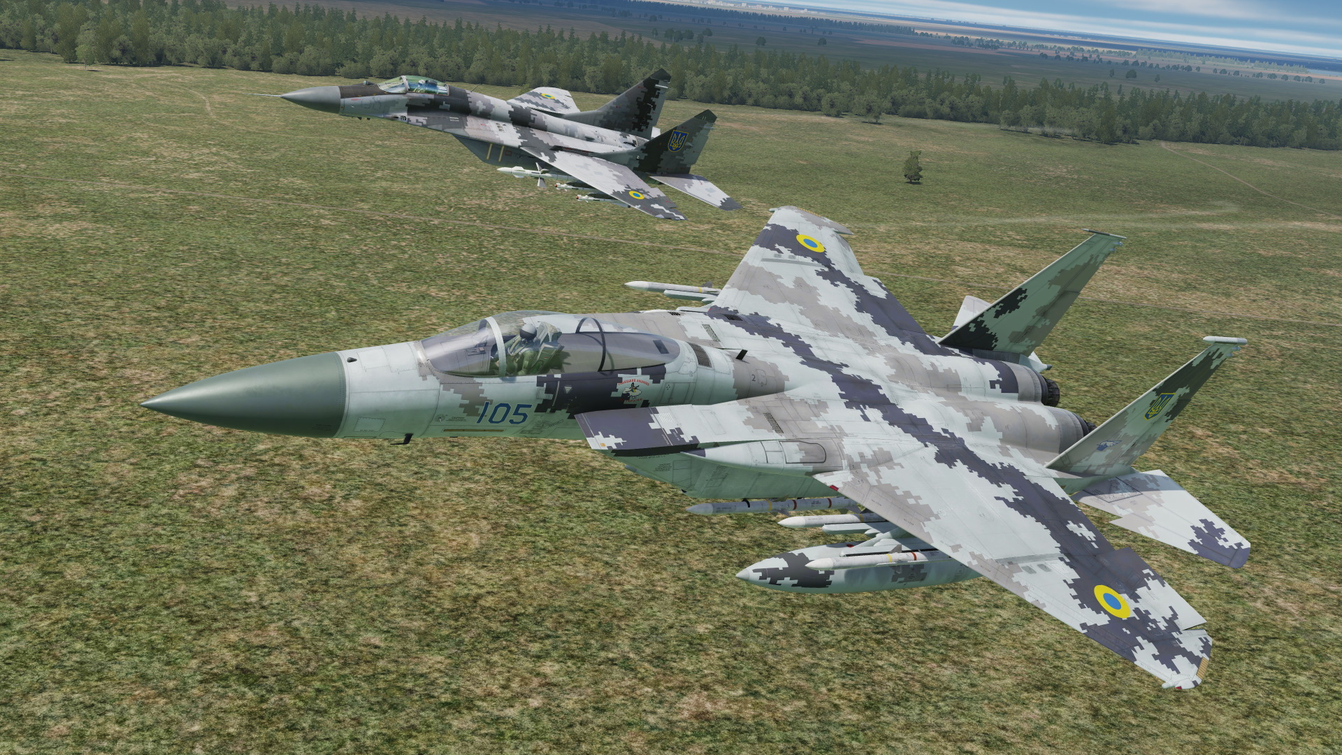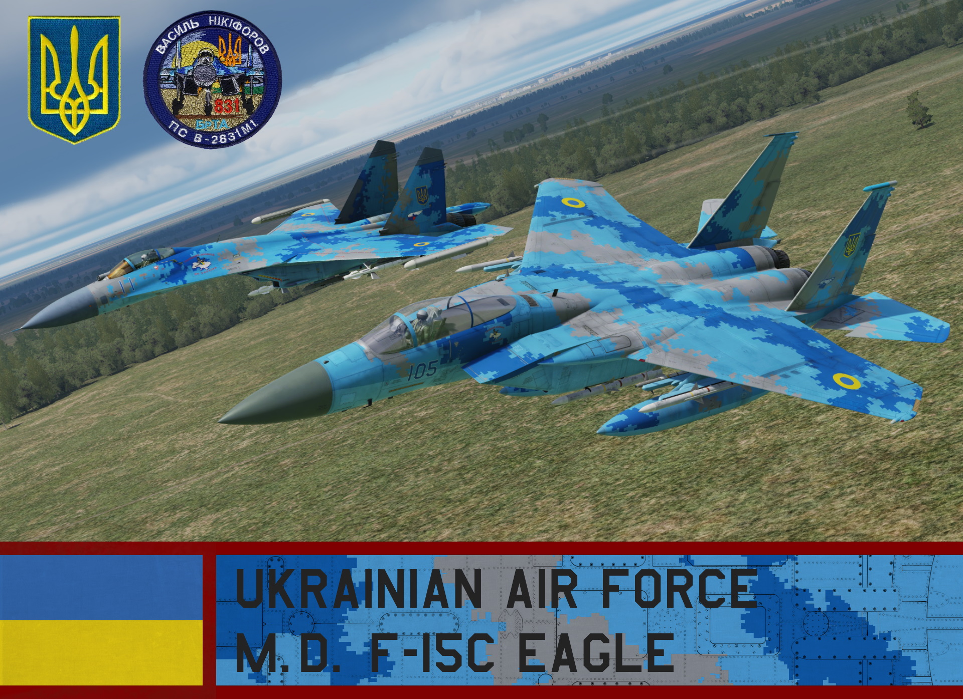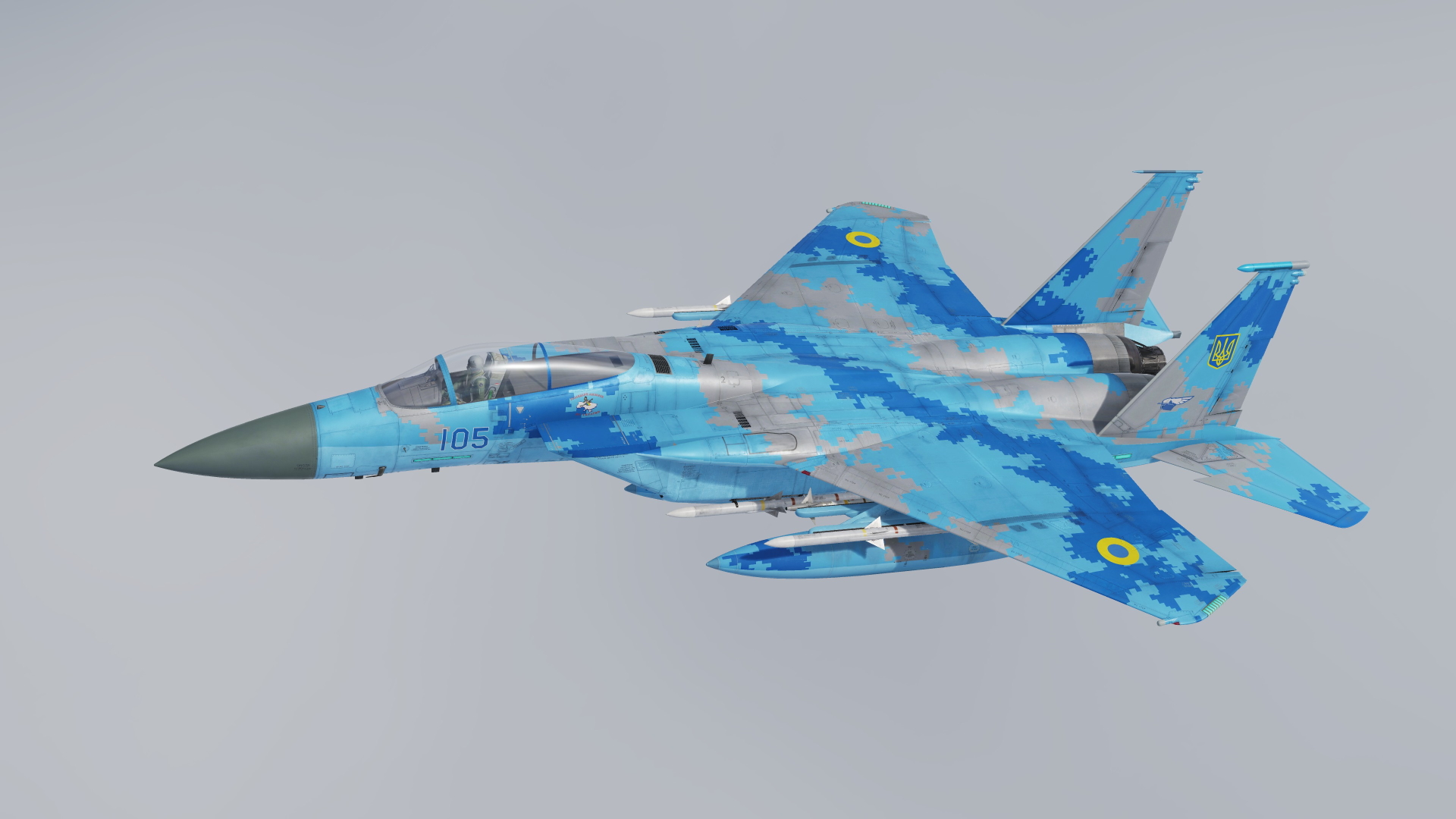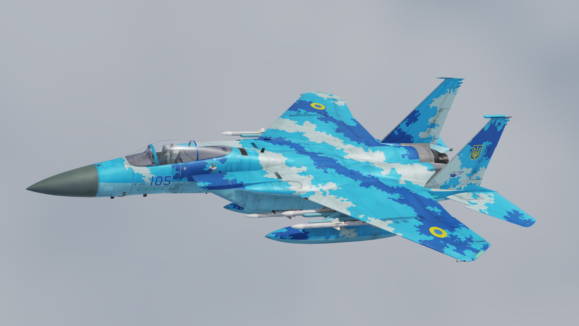 Fictional Ukrainian Air Force F-15C Eagle, based off Ukrainian Su-27s already found in-game.