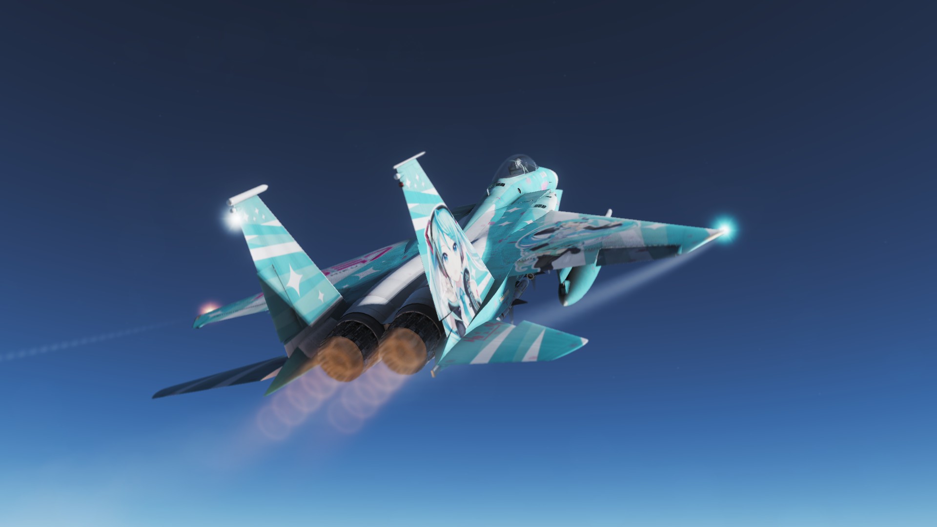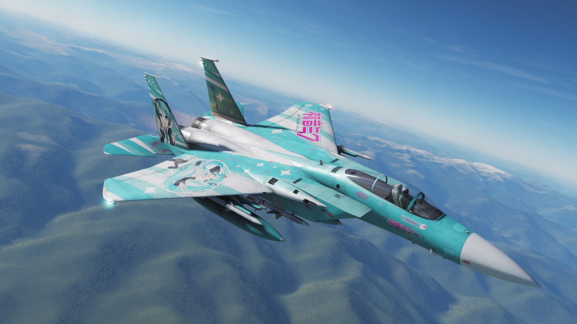 This Hatsune Miku skin for F-15C will allow you to preach the greatness of our japanese waifus using high tech military technology!