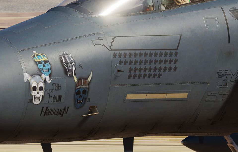From the 336th EFS "Rocketeers" AF88-1669 named "The Four Horsemen" Special nose art, based out of Seymour Johnson AFB, North Carolina