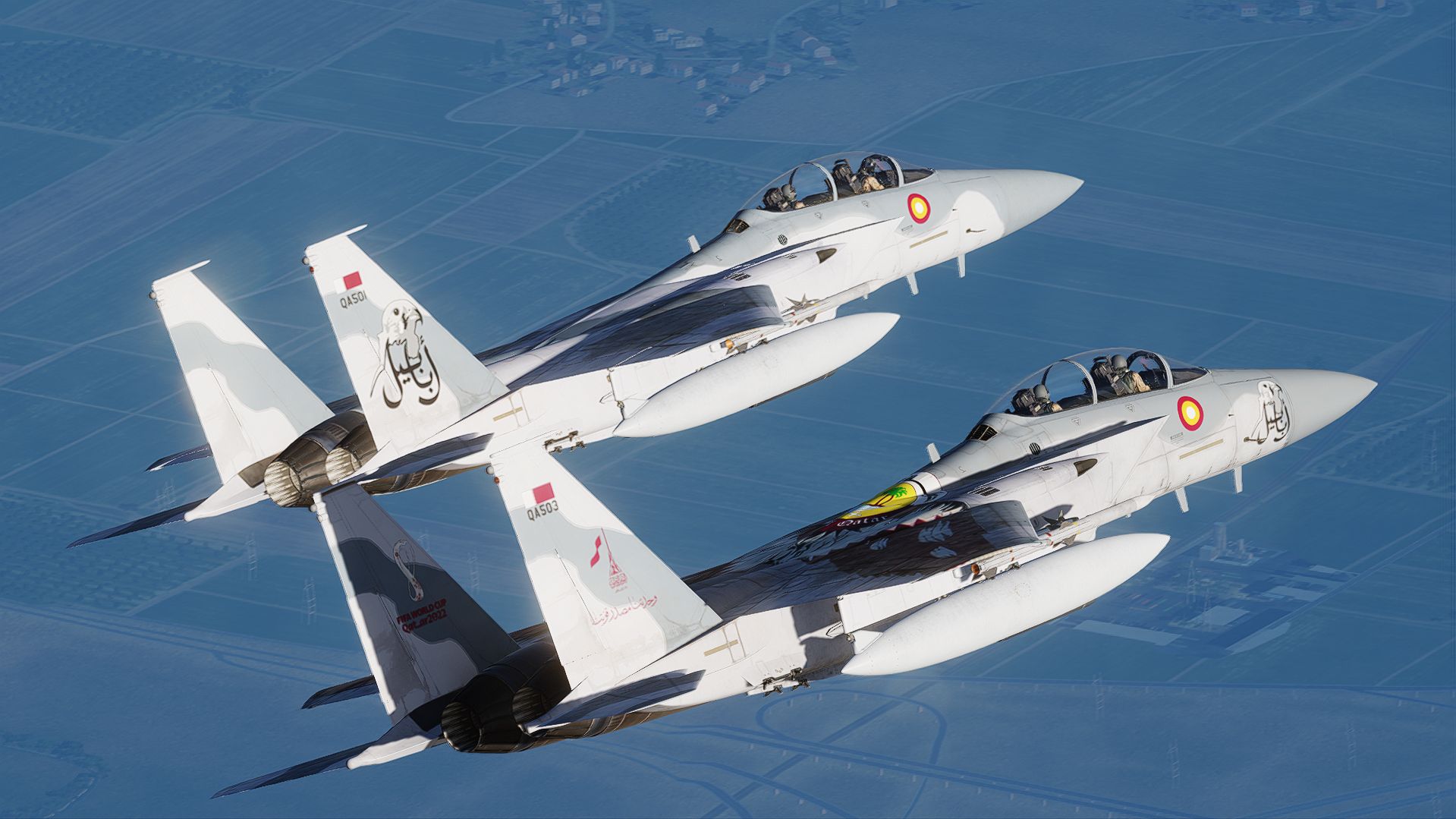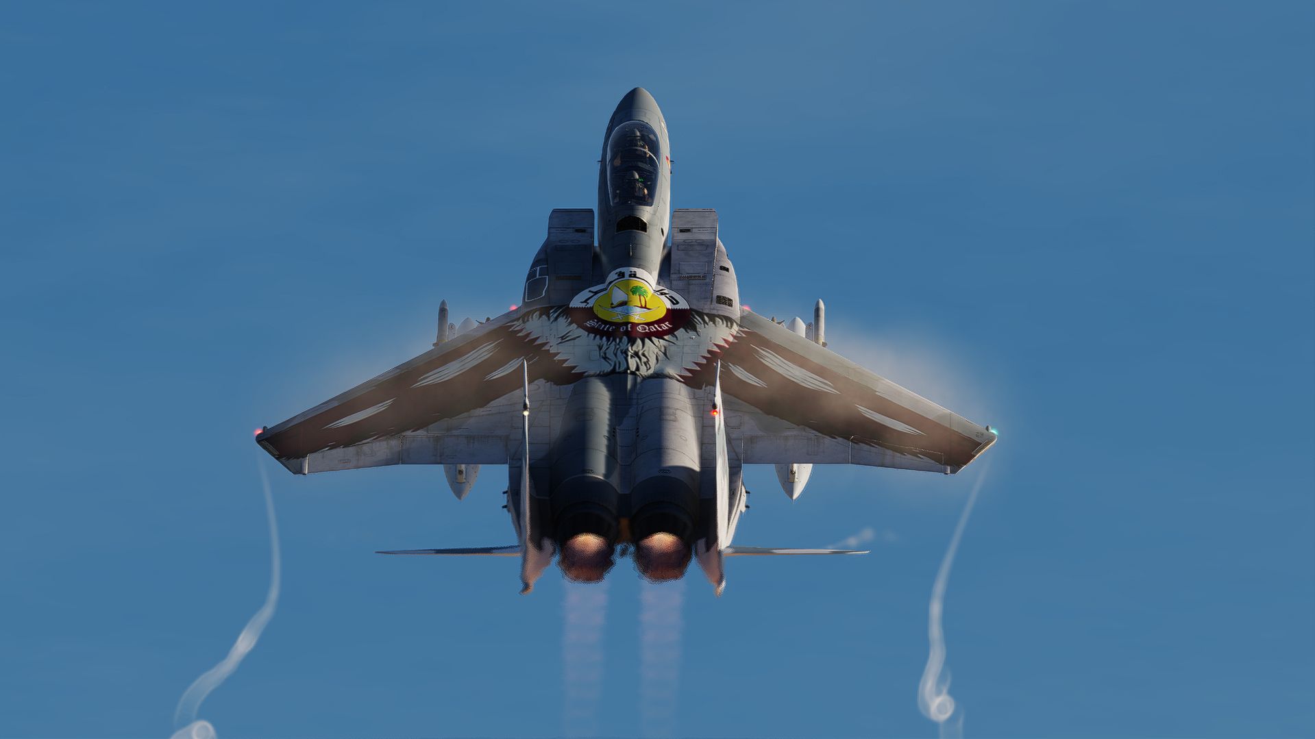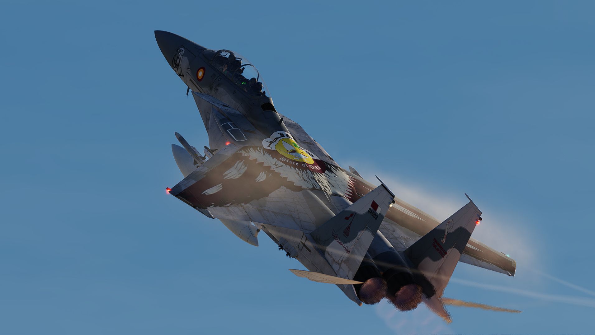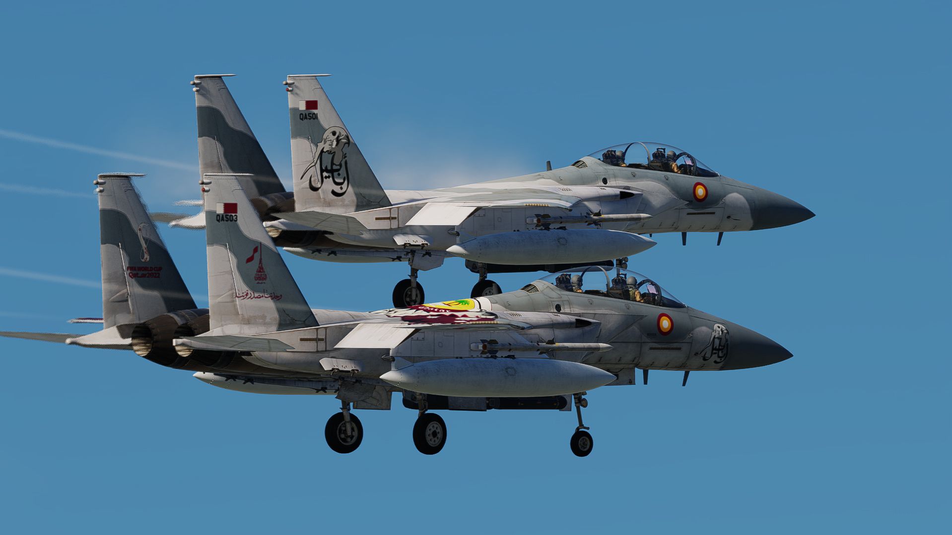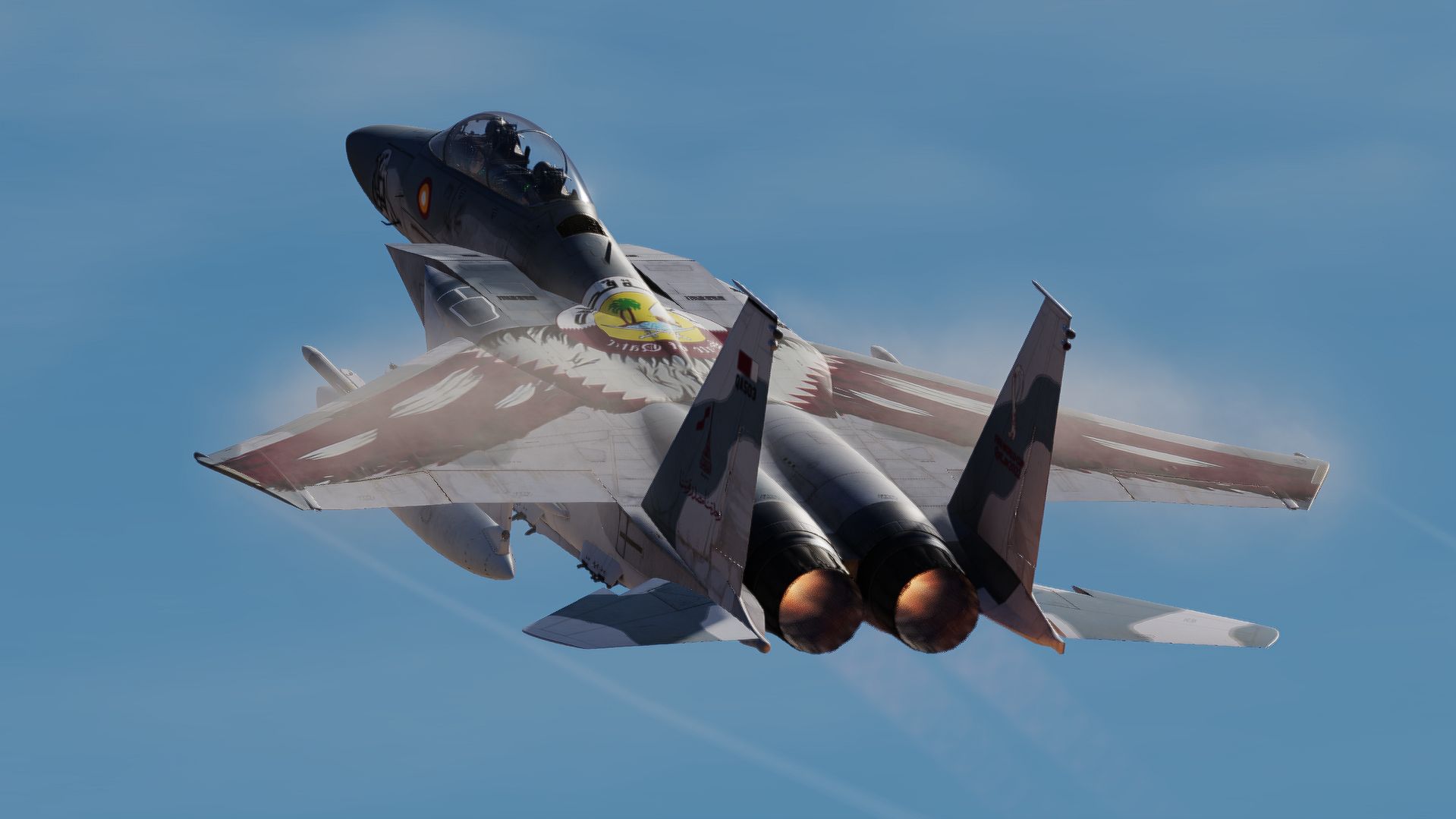 The livery features a Qatar colored Eagle on the top of the F-15QA, With the "STATE OF QATAR" logo in it