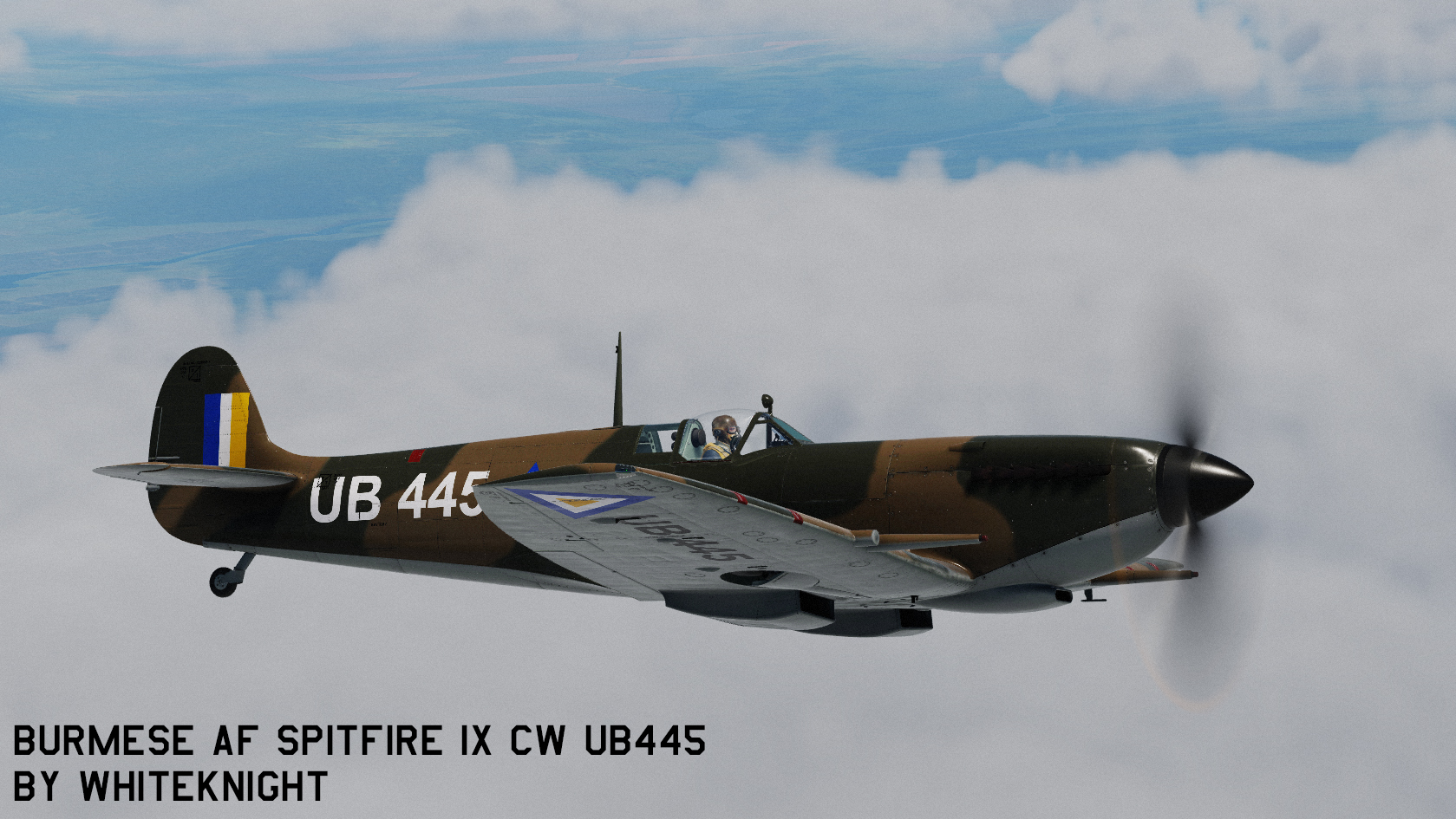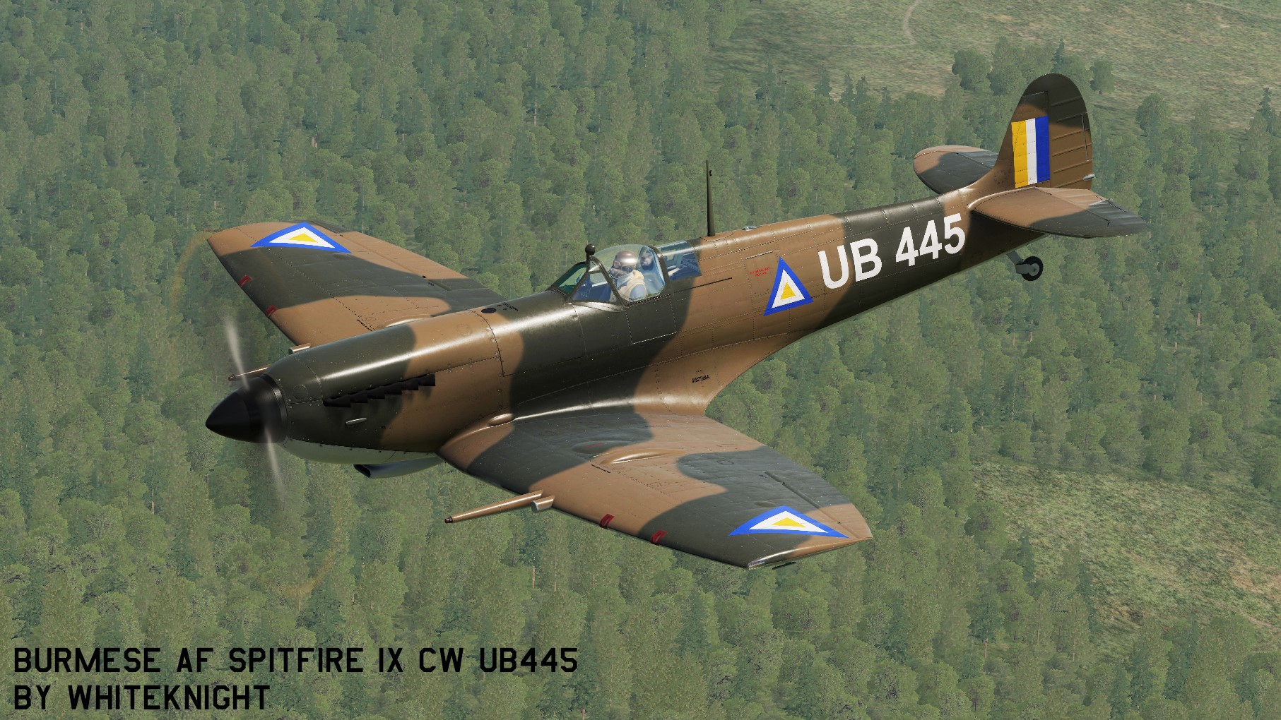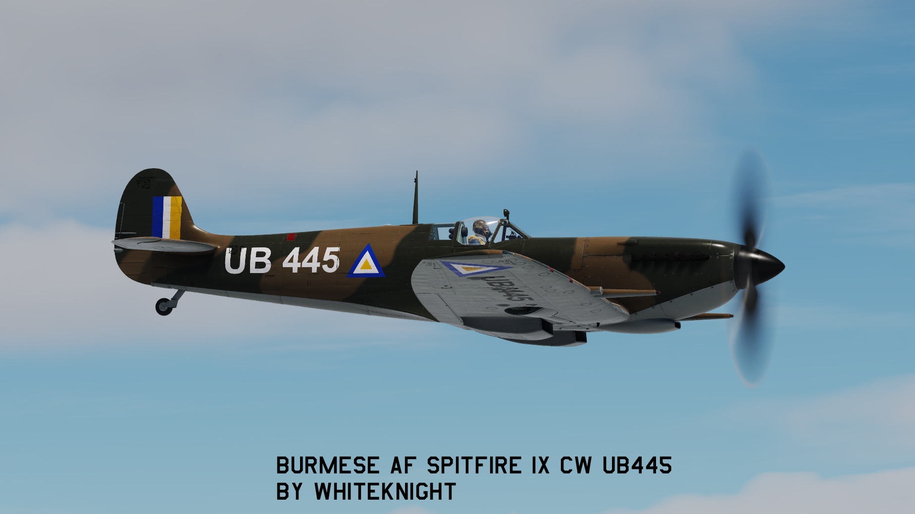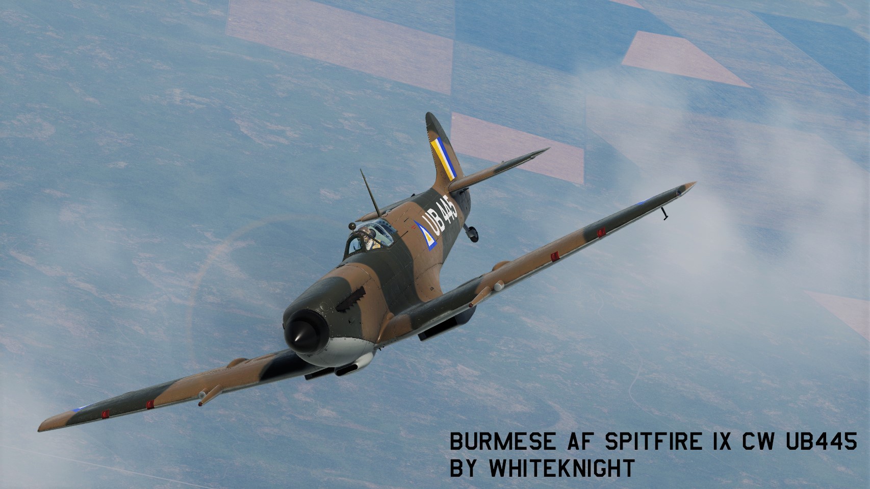 DCS Spitfire MK.IX CW skin depicting spitfire UB445 of Burmese Air Force during 1950s.