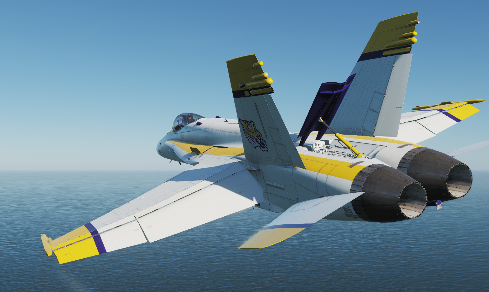I released this new version as "LSU Hornet Championship Edition" ("LSU Hornet v2" in the mission editor Paint Scheme menu) so people who prefer the previously released "LSU Hornet" can still download that one and even use these together to form a swarm of LSU hornets!