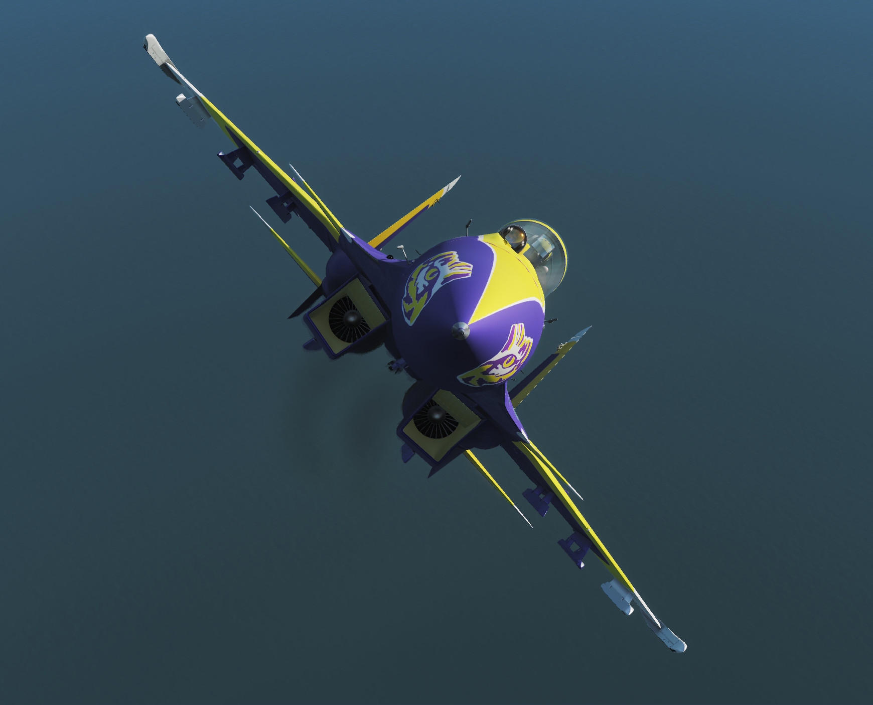 This Su33 skin is based on the uniform, logo and field of the LSU (Louisiana State University) 2019 National Champion college football team.  Included are both a clean airshow and dirty combat version of the paint scheme.  This skin is based on their alternate purple uniforms.  I've also created a version for the F/A 18-C Lot 20 Hornet based on their usual white uniforms, you can find that one by searching for "LSU Tiger Hornet".  Geaux Tigers!