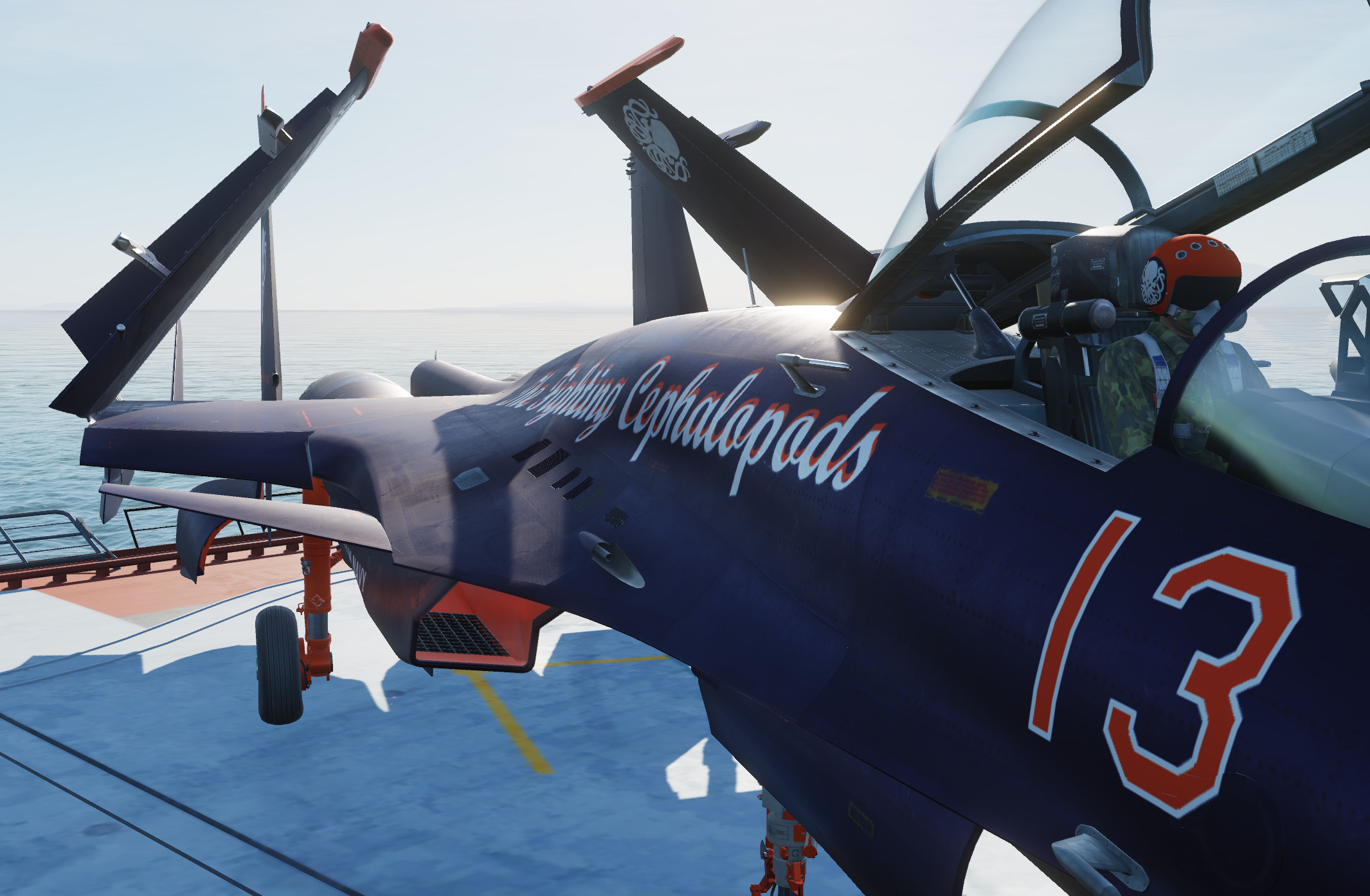 From the Cthulhu logo on the tail, nose, wings, pilot helmet and patch, to the Arkham Navy registration, "The Fighting Cephalopods" squadron is ready to take on all threats.  Fly the personal F/A-18C Hornet of Lt Howard "Daemon" Lovecraft specially built by Miskatonic Aerospace and lead the way to victory in this dimension or any other!