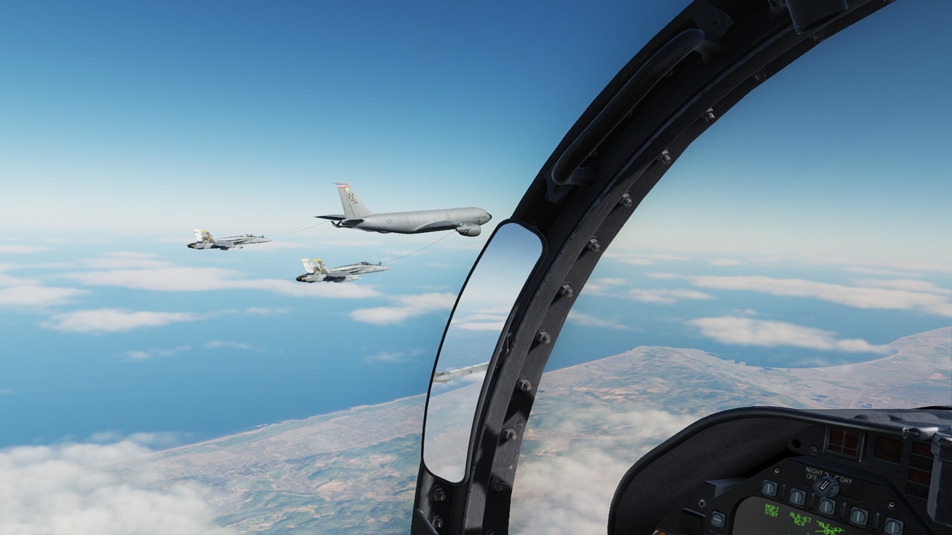Full logistics backbone: tankers (boom & basket), TACAN, AWACS, carriers, convoy coordination, heli transport