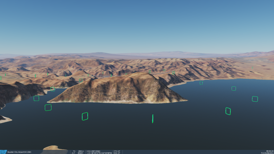 This Course Starts with long high speed checkpoints, and 3 F-18 Fighters coming at you in a head on. They are at 1000 ft and are pretty easy to avoid (just thought I would throw in some eye candy) getting closer and closer as you travel up the River to the Hoover Dam, as the turns get closer and you get slower, you will have to start "Sliding" around some of the curves. Eventually reaching the damn, and flying up over and around to begin the Las vegas run. Fly through valleys, small mountains, to blasting over residential neighborhoods at 100 Ft, then a Pass through the city, to Finally land on the Runway. This is pretty hard and frustrating until you learn it, but fun as Hell when you can. This vid is mostly in cockpit view, to show First person aspect.