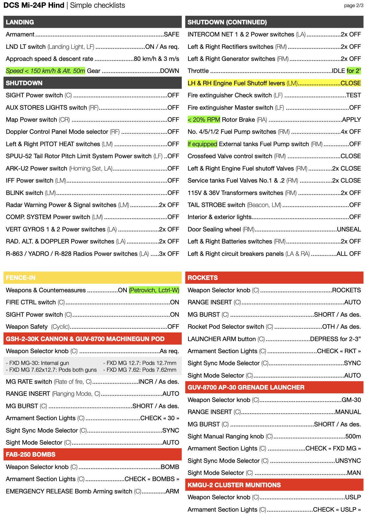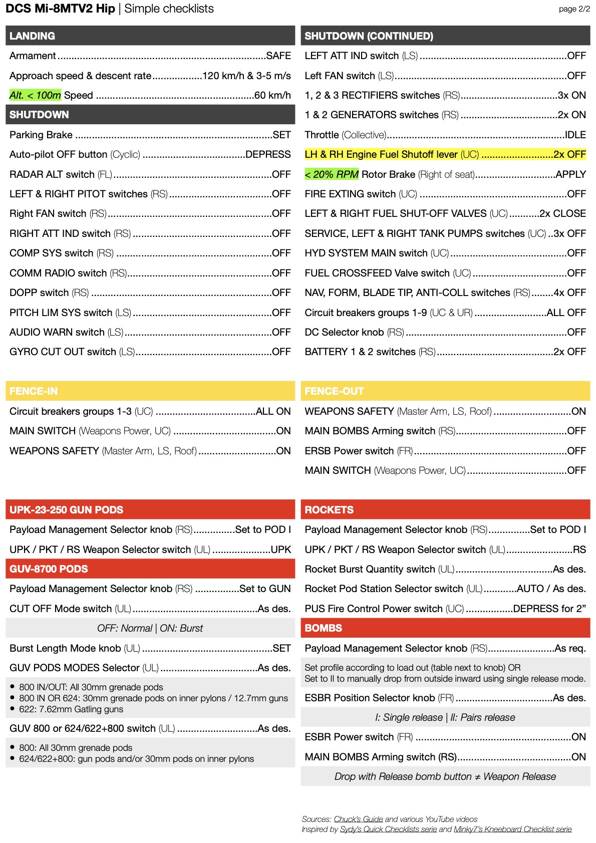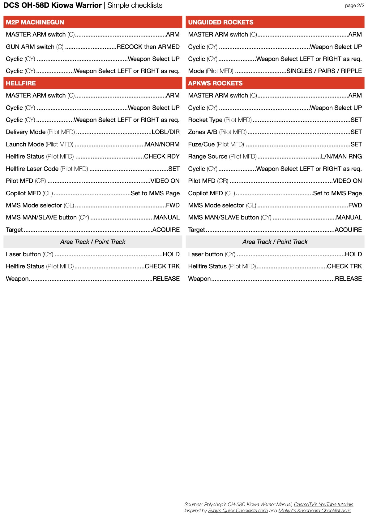 A simple yet detailed enough kneeboard checklist for the OH-6A Cayuse / Loach mod by Tobsen & Eightball (https://github.com/tobi-be/DCS-OH-6A) with procedures for startup, shutdown and basic weapons usage.
