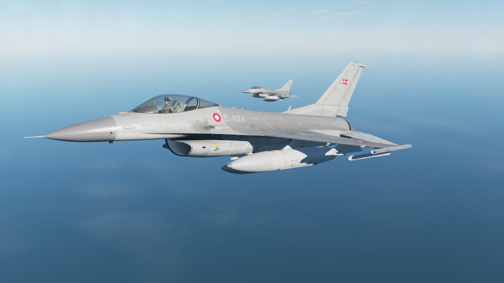 Skin pack for F-16C representing a Danish version. The skin is made from several official and unofficial guides on the 3 tone gray design used on Danish F-16MLU using Federal Standard 595 colors and features a lot of markings and text on the skin. Pack contains 3 units from RDAF ESK727 (E-007, E-024 and E-194). With correct plane and airplane serial numbers used on those units.