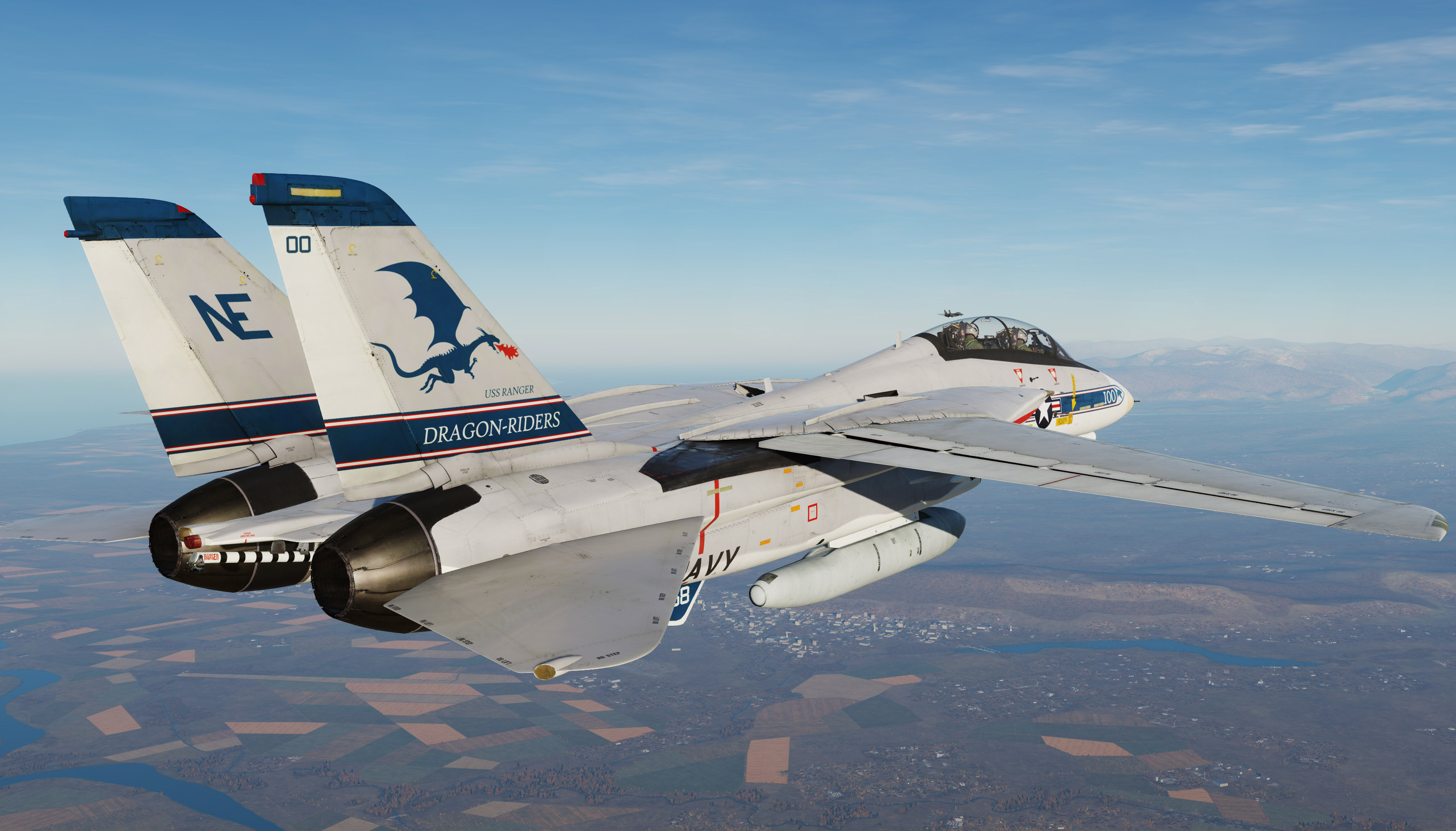 Introducing VF-168 Dragon Riders. This is a fictional skin for the F-14B Tomcat that represents MODEX numbers 100 through 103 (for Parts 1 and 2) for aircraft attached to the USS Ranger (CV-61). These are Low Visibility Tactical Schemes that depict the condition of the aircraft after a long cruise.