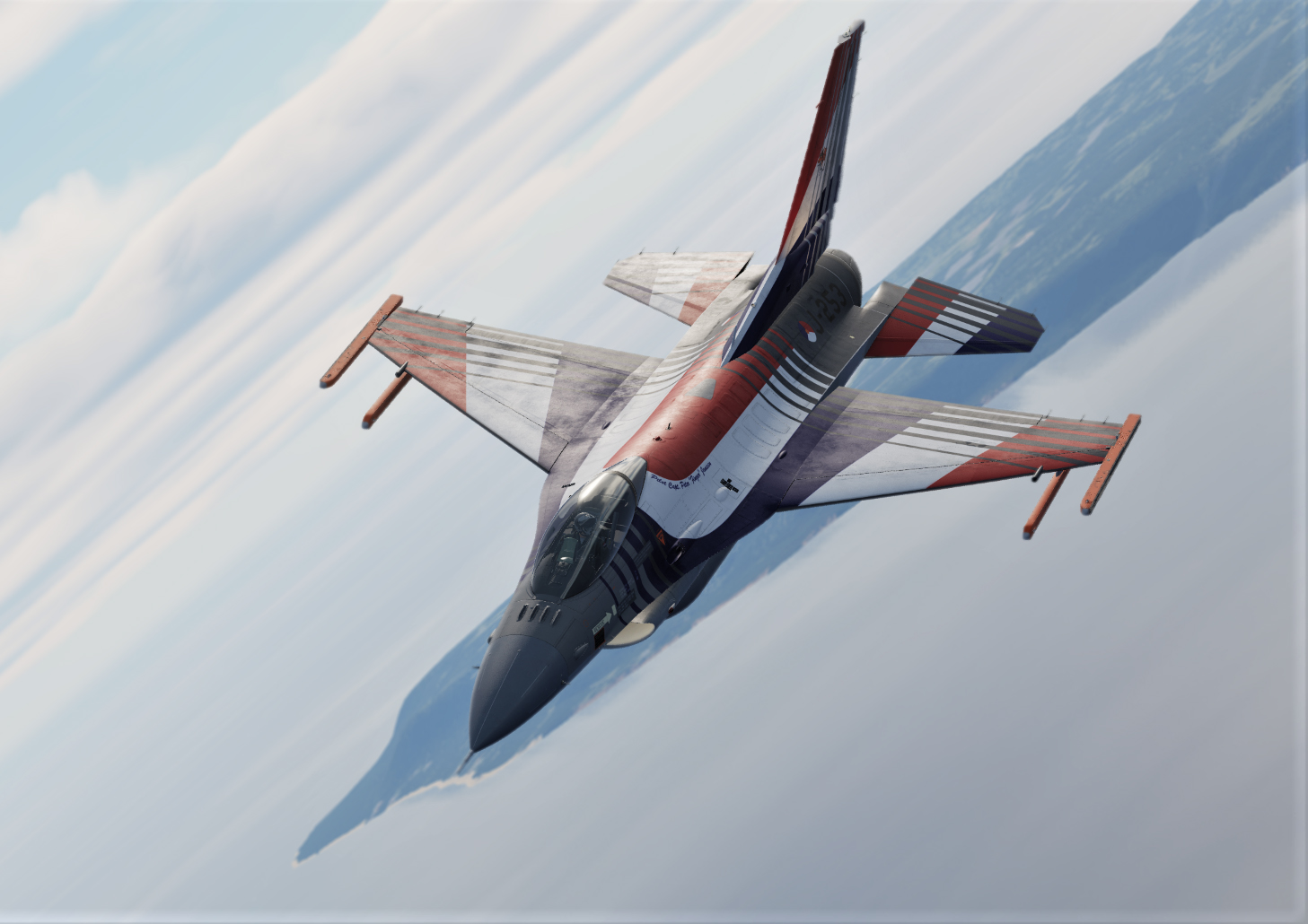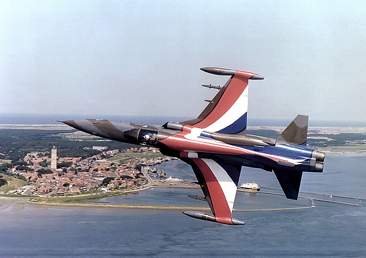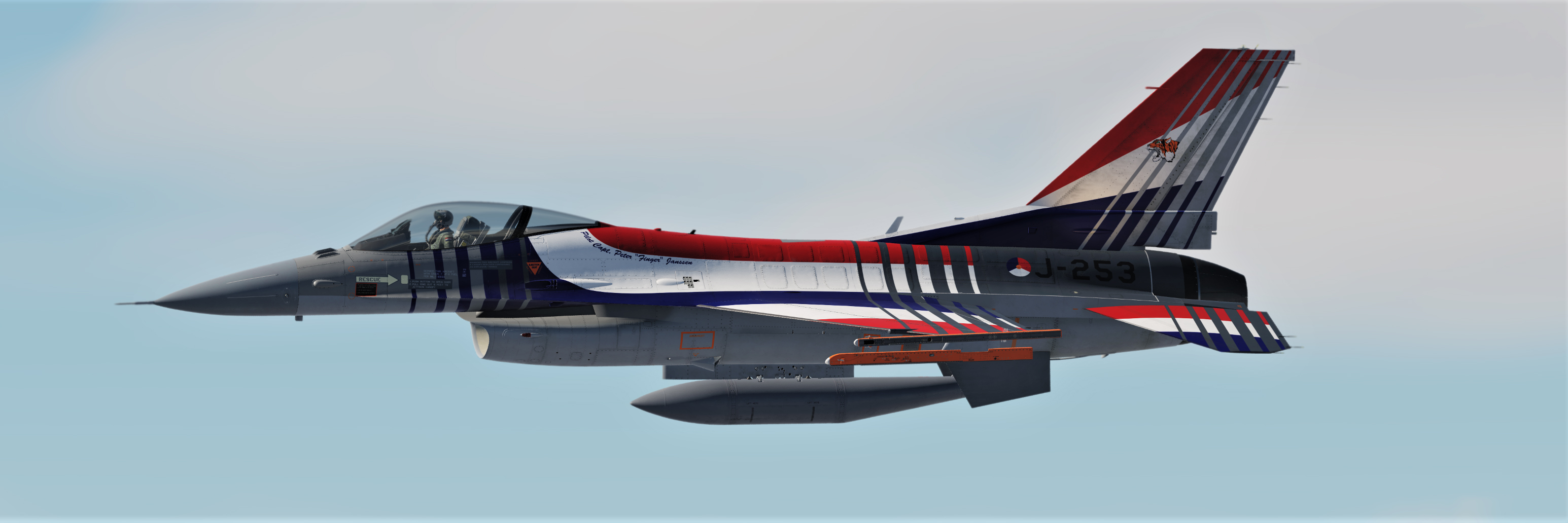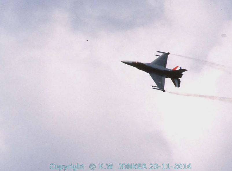 In 1994, RNLAF 313 squadron from air base Twenthe received the task of display flying with the F-16a and once again two F-16s, J-251 and J-253, were painted in this striking red, white and blue.