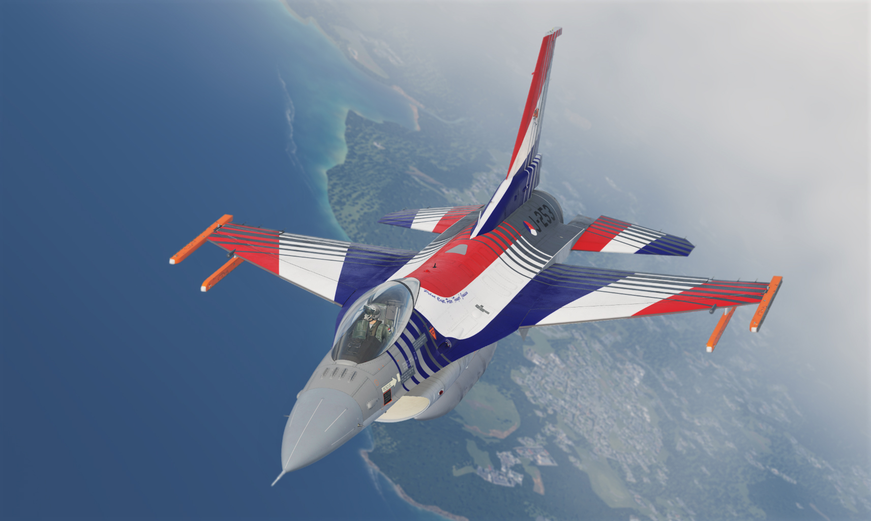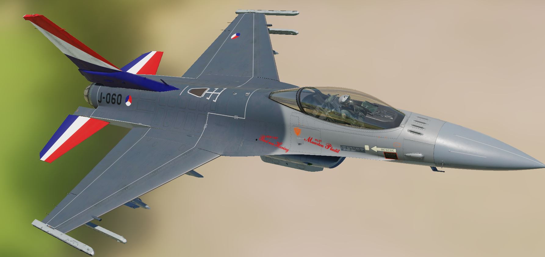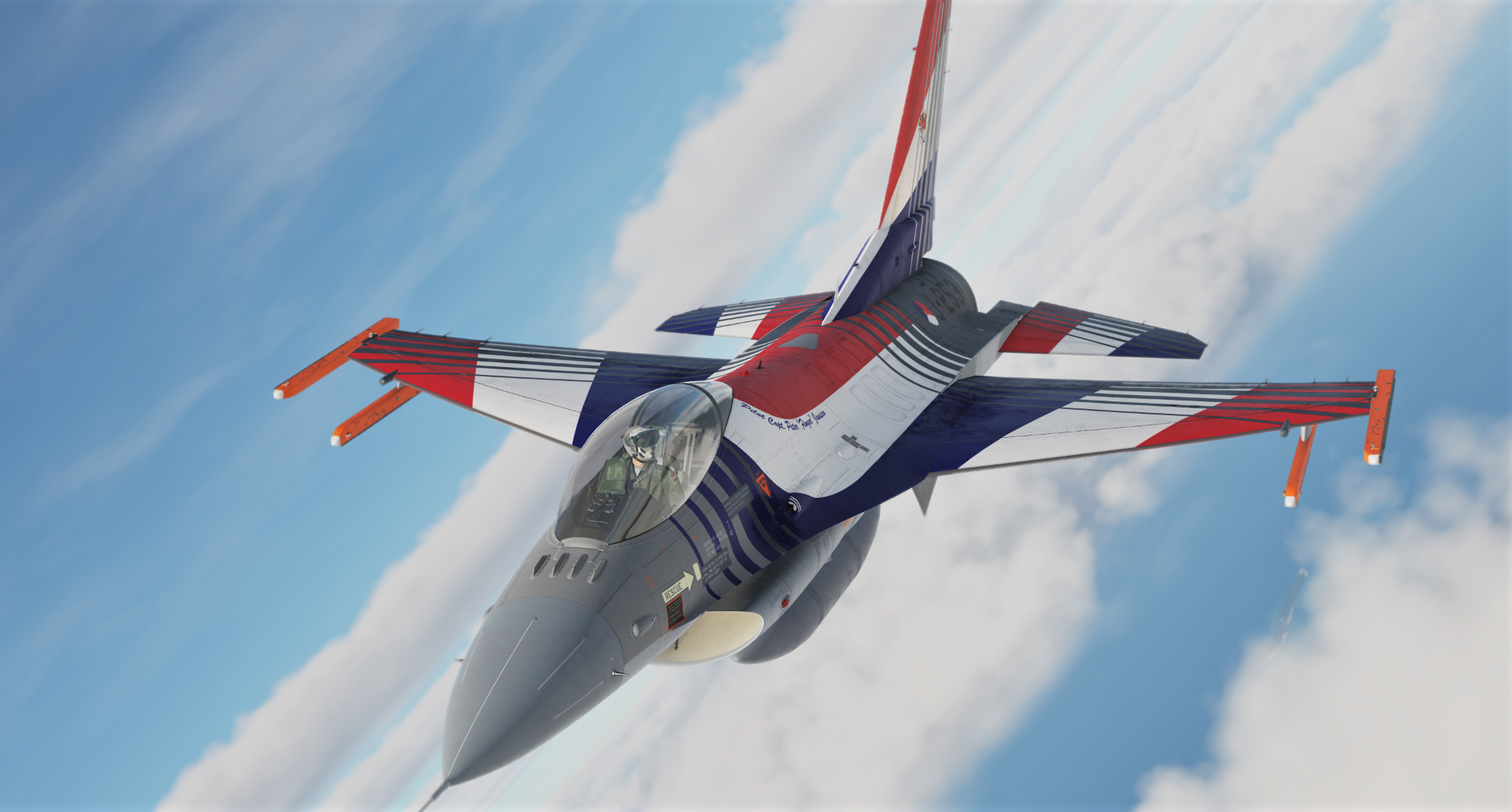 In 1994, RNLAF 313 squadron from air base Twenthe received the task of display flying with the F-16a and once again two F-16s, J-251 and J-253, were painted in this striking red, white and blue.