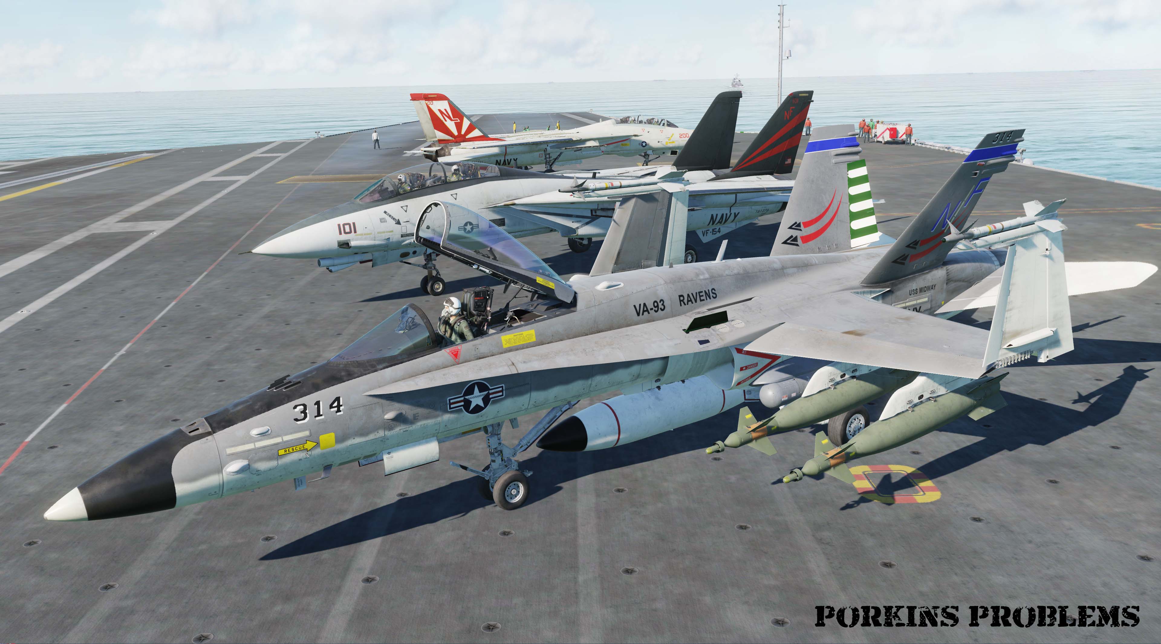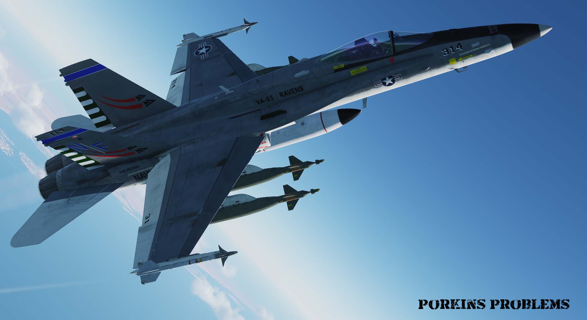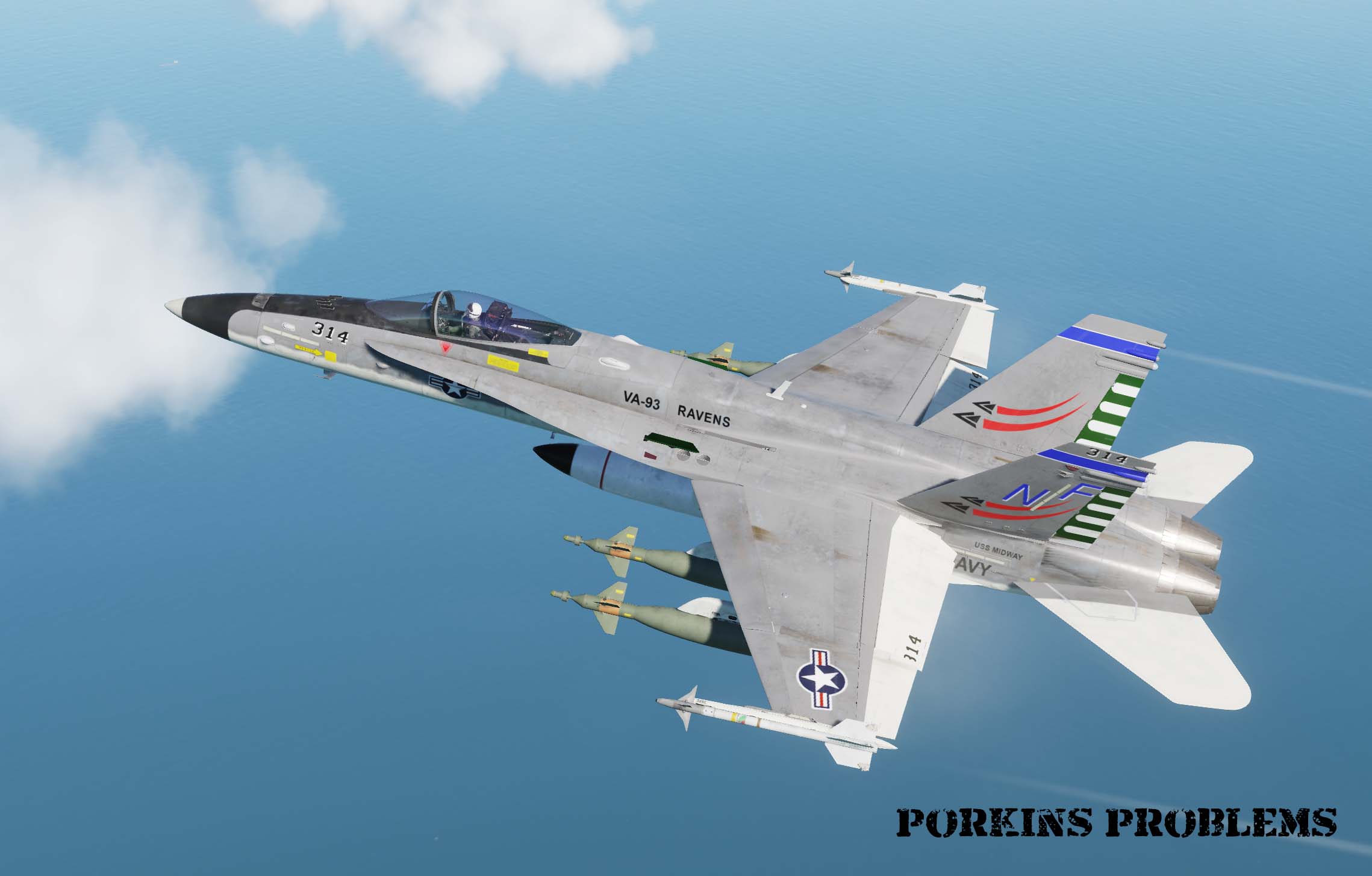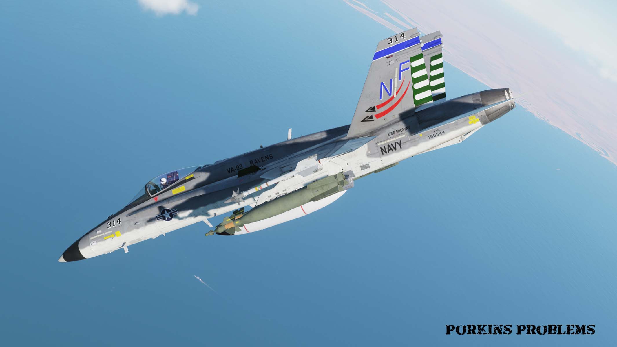 F/A-18C skin in the old 1970s schemes as seen on old A-7E Corsair II.  This one is is for the disestablished VA-93 Ravens.