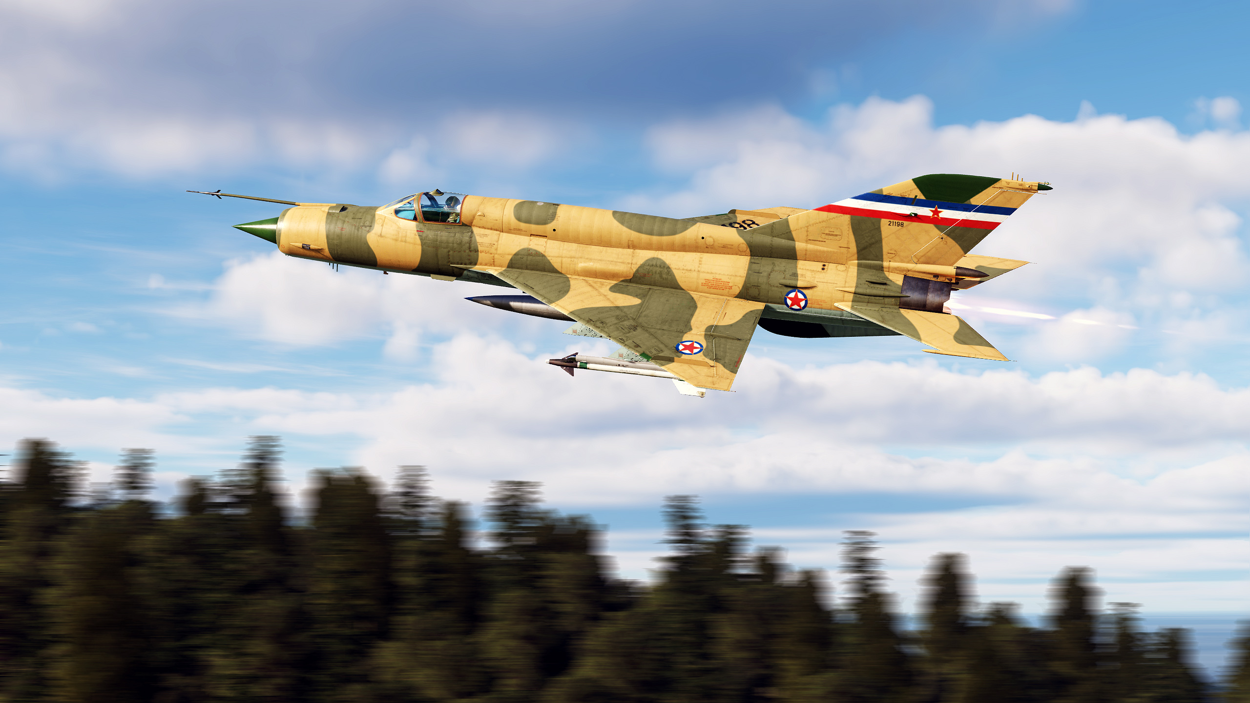 At the end of 1989, 19 Mig 21s and 23s of Saddam Hussein's Iraqi air force were sent to Yugoslavia for repairs. Due to the sanctions on Iraq, and the war in Croatia in 1991, the planes could not be returned and were painted in Yugoslav colors.