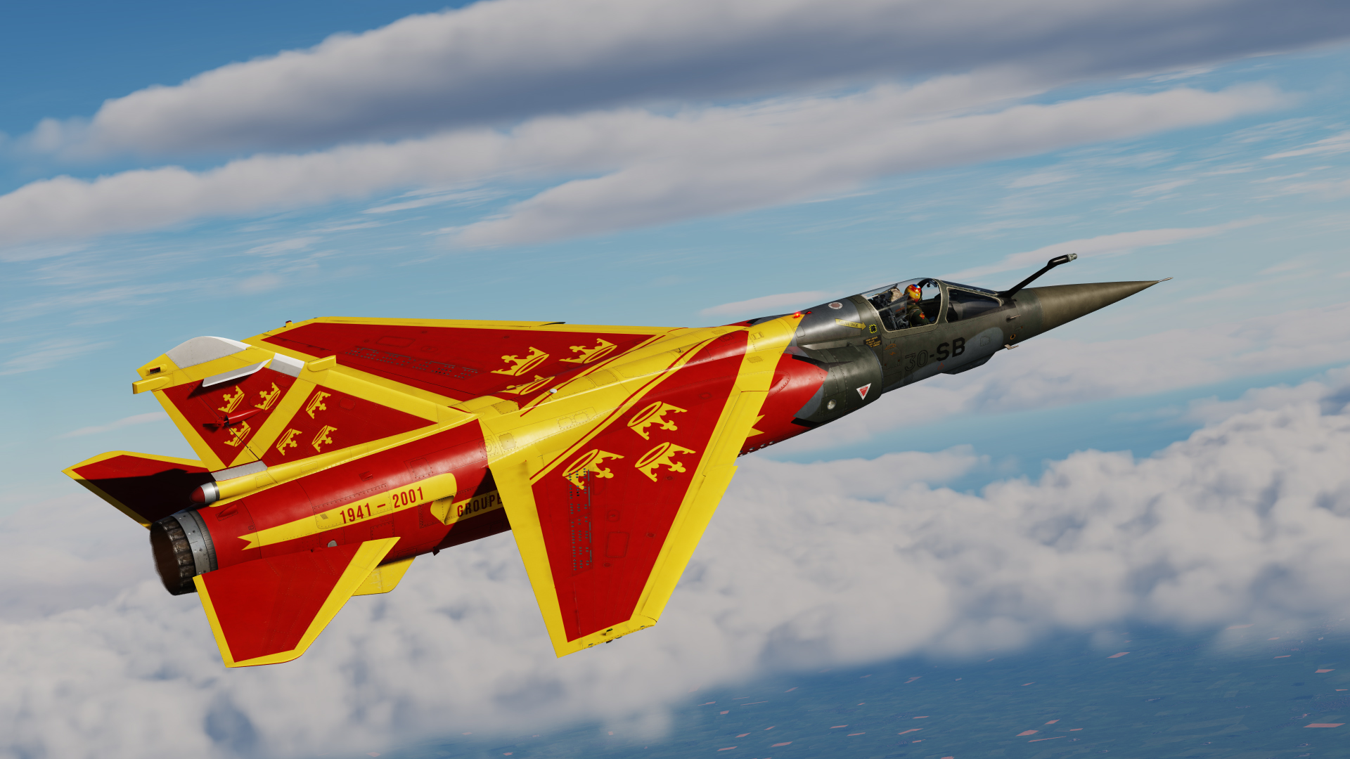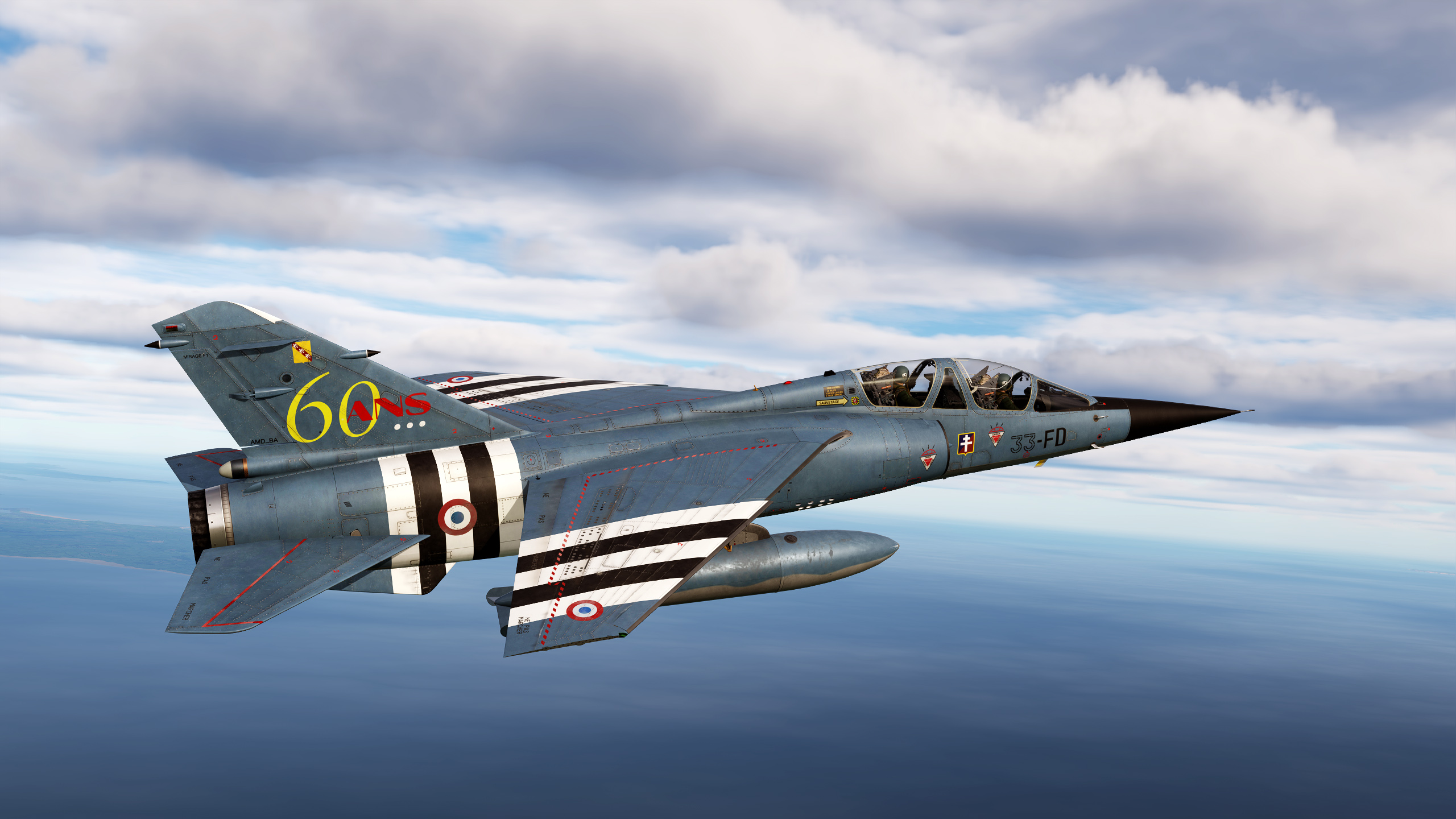These skins aim at representing 2 Mirage F1CT in service with EC 1/30 'Alsace' in 2001, including the 60 years of 'Alsace' special scheme. For use with Aerges Mirage F1 EE.