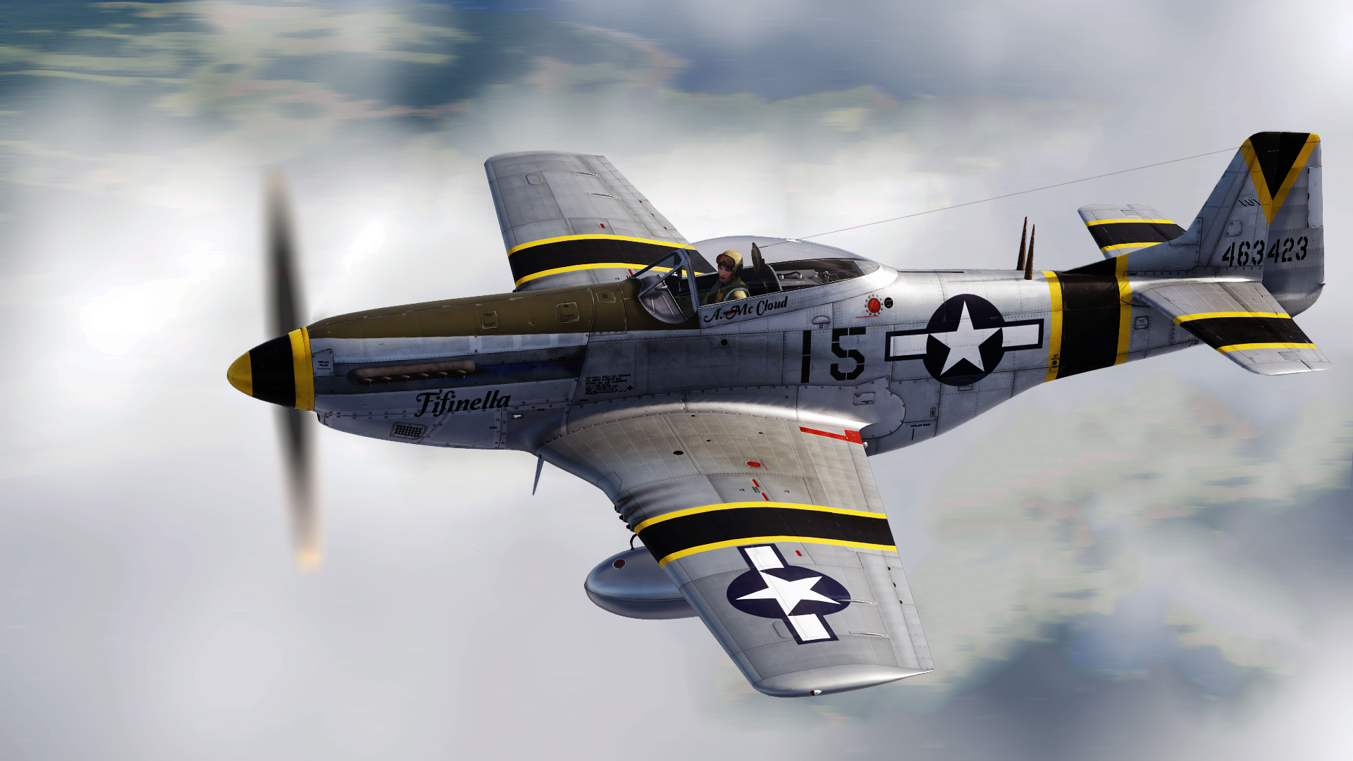 These liveries represent 2 P-51D-30-NA Mustangs of the 47th and 462nd fighter squadrons based on Iwo Jima during WW2, as seen in #5 of "Angel Wings" comics series. The liveries come with a representation of Angela Mc Cloud in her plane. She is a WASP (Women Airforce Service Pilots) in the book.