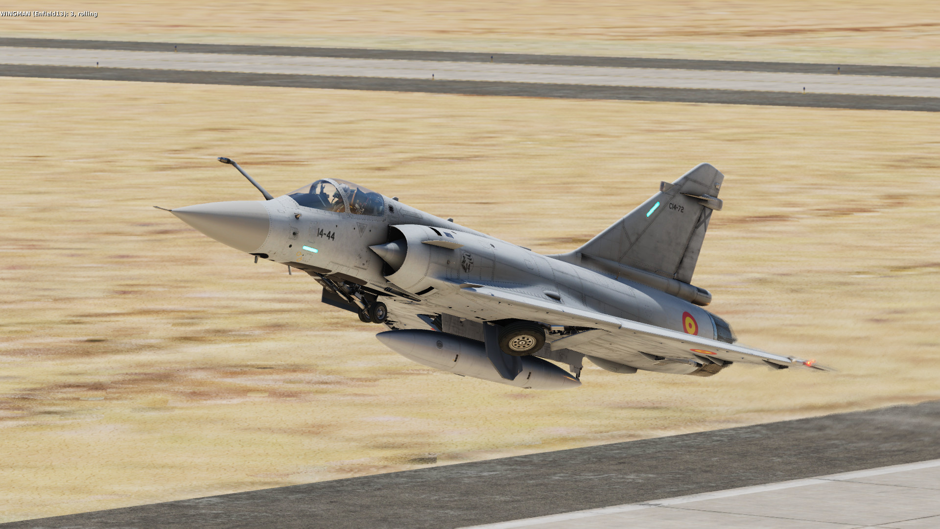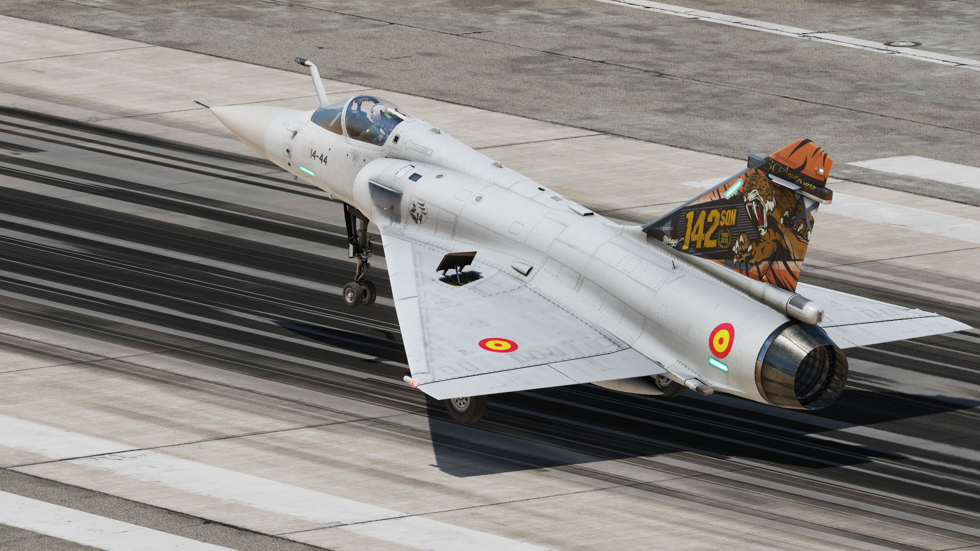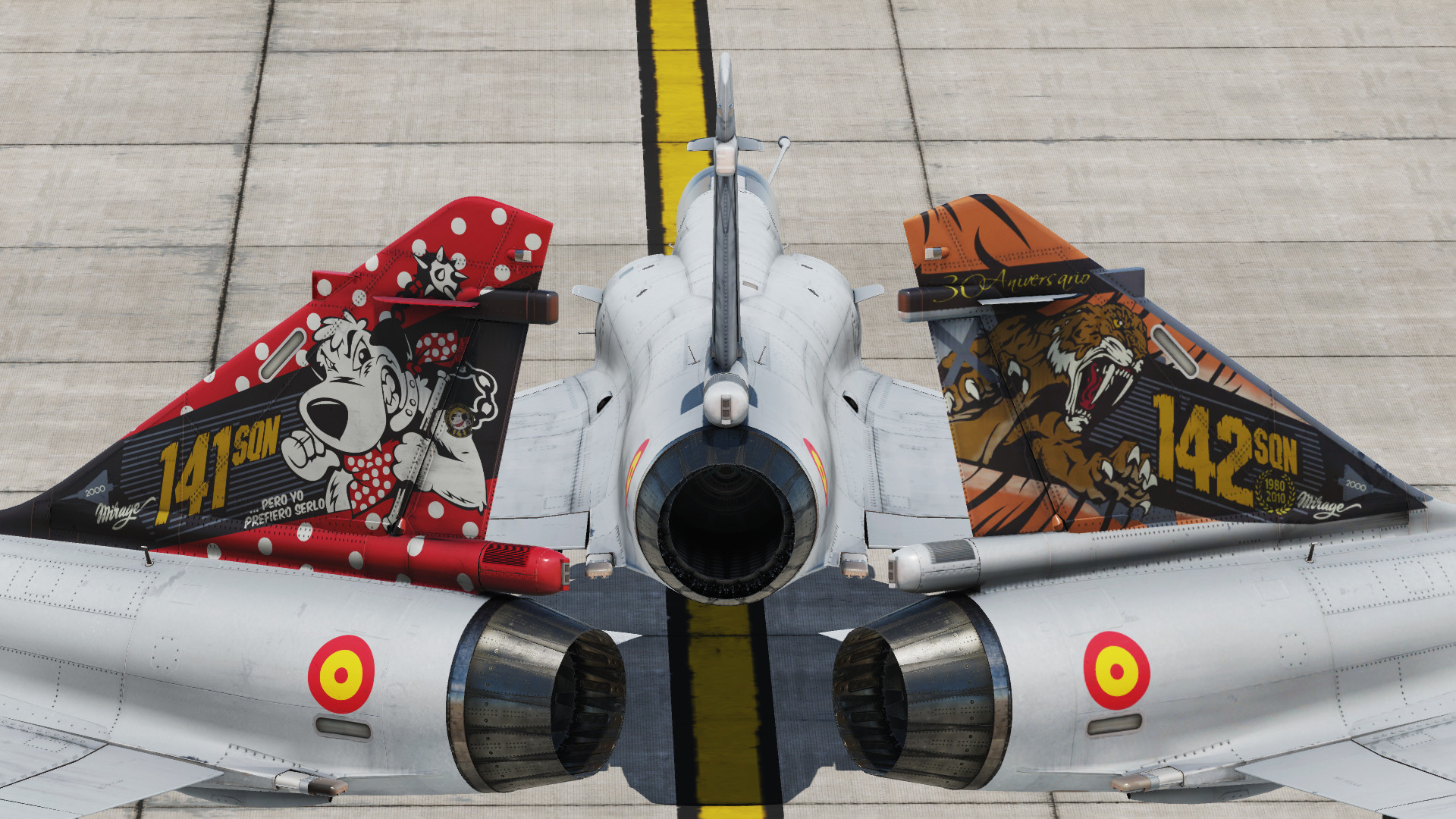ALA 14, part of Spain's Ejército del Aire, flew the Mirage F1 from 1975 to 2013. As the F1 does not yet exist in game, I've made this skinpack of three Mirage 2000s (one standard low vis, and one each with a high vis tail for 141 sqn and 142 sqn) instead.